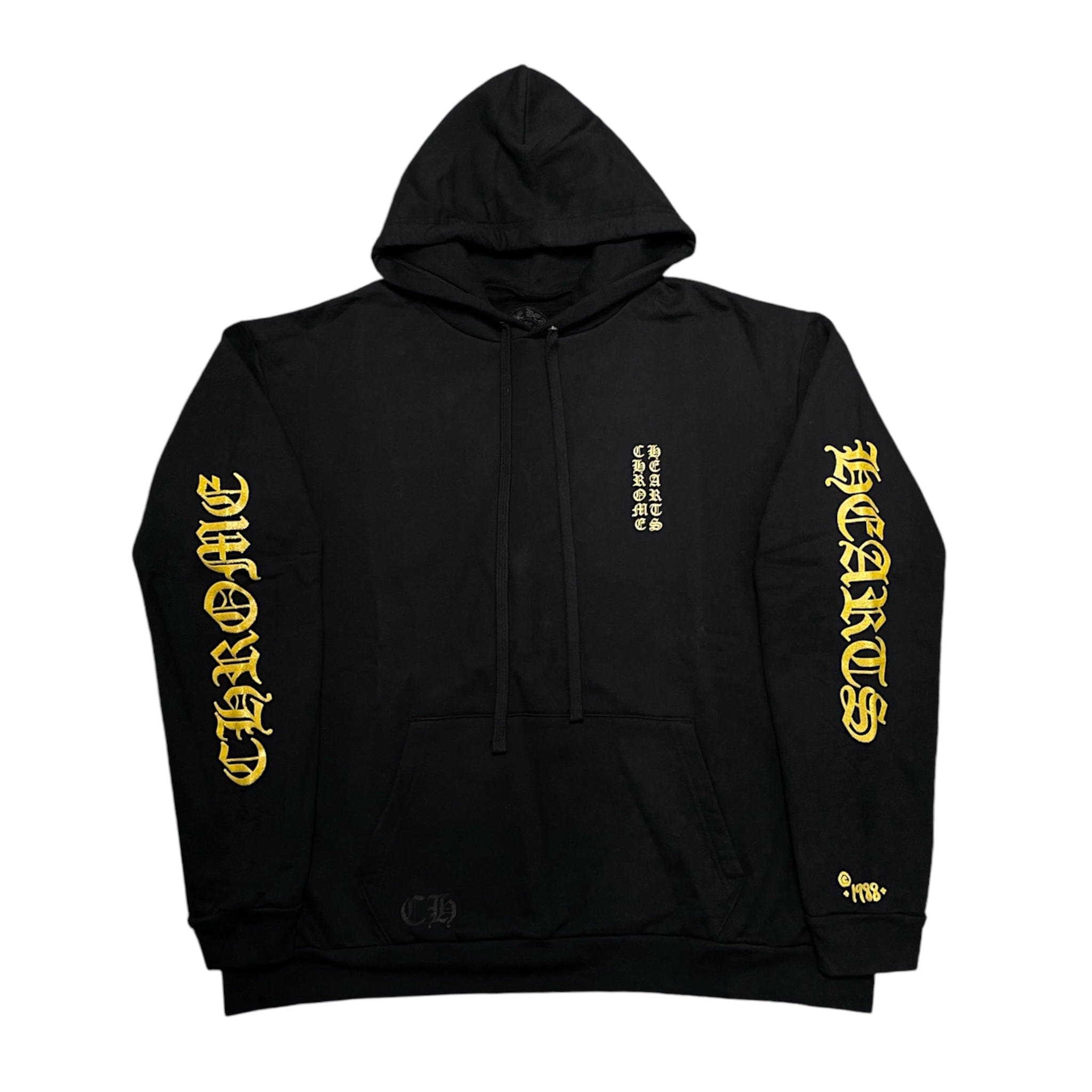 Chrome Hearts Online Exclusive 1988 Glittered Vertical Logo Hooded Sweatshirt Black Gold