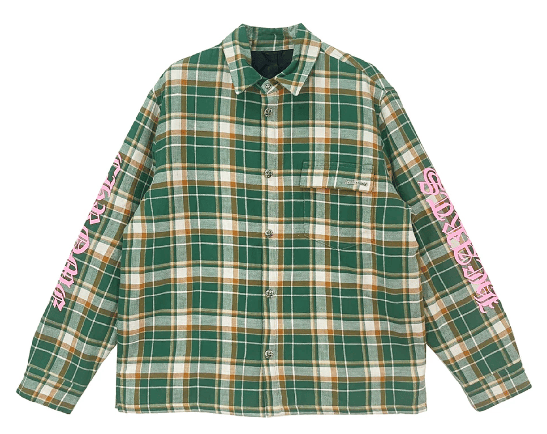 Chrome Hearts Padded Flannel Button Up Shirt Green Pink Multi