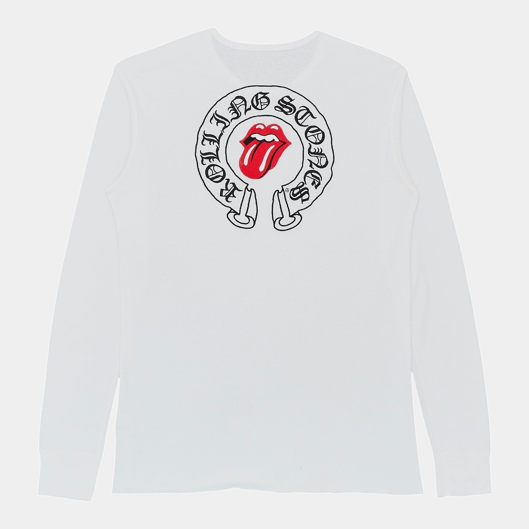 Chrome Hearts x The Rolling Stones Embroidered Logo Thermal Long Sleeve Tee Shirt White Black Red