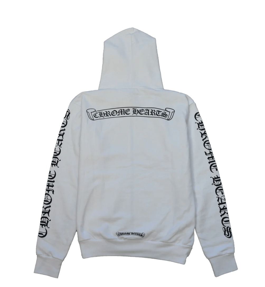 Chrome Hearts Scroll Logo Zip Up Hooded Sweatshirt White Black