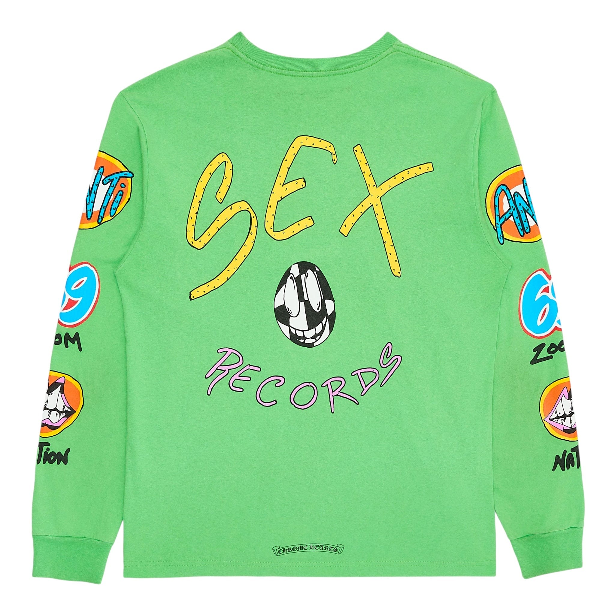 Chrome Hearts x Matty Boy Sex Records Logo Long Sleeve Tee Shirt Lime Green Multi