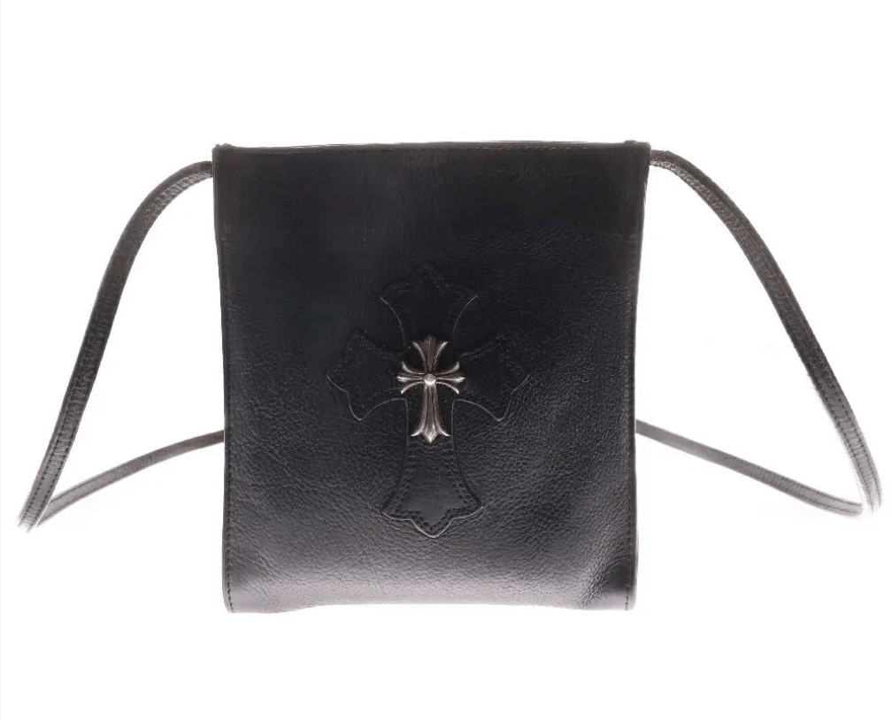 Chrome Hearts Silver Accent Leather Cross Patch Shoulder Bag Black