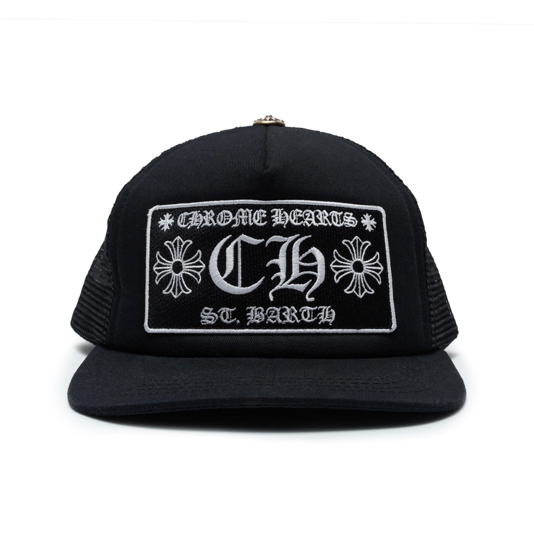 Chrome Hearts St. Barth Exclusive CH Patch Trucker Hat Black White