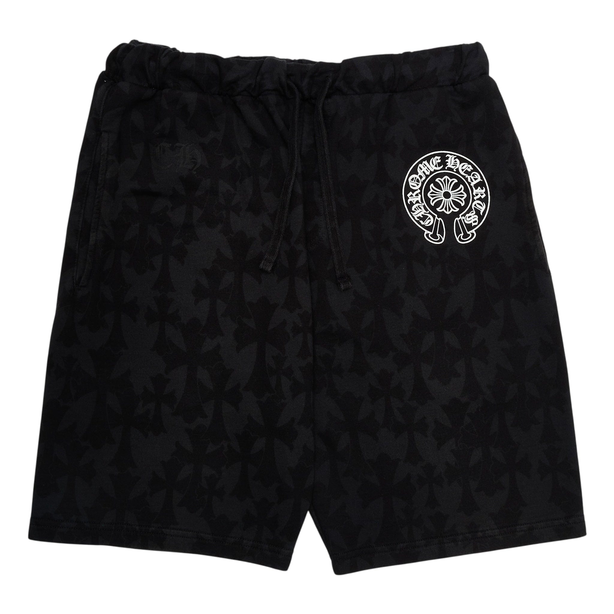 Chrome Hearts Sublimated Cemetery Cross Print Horseshoe Logo Sweat Shorts Black White
