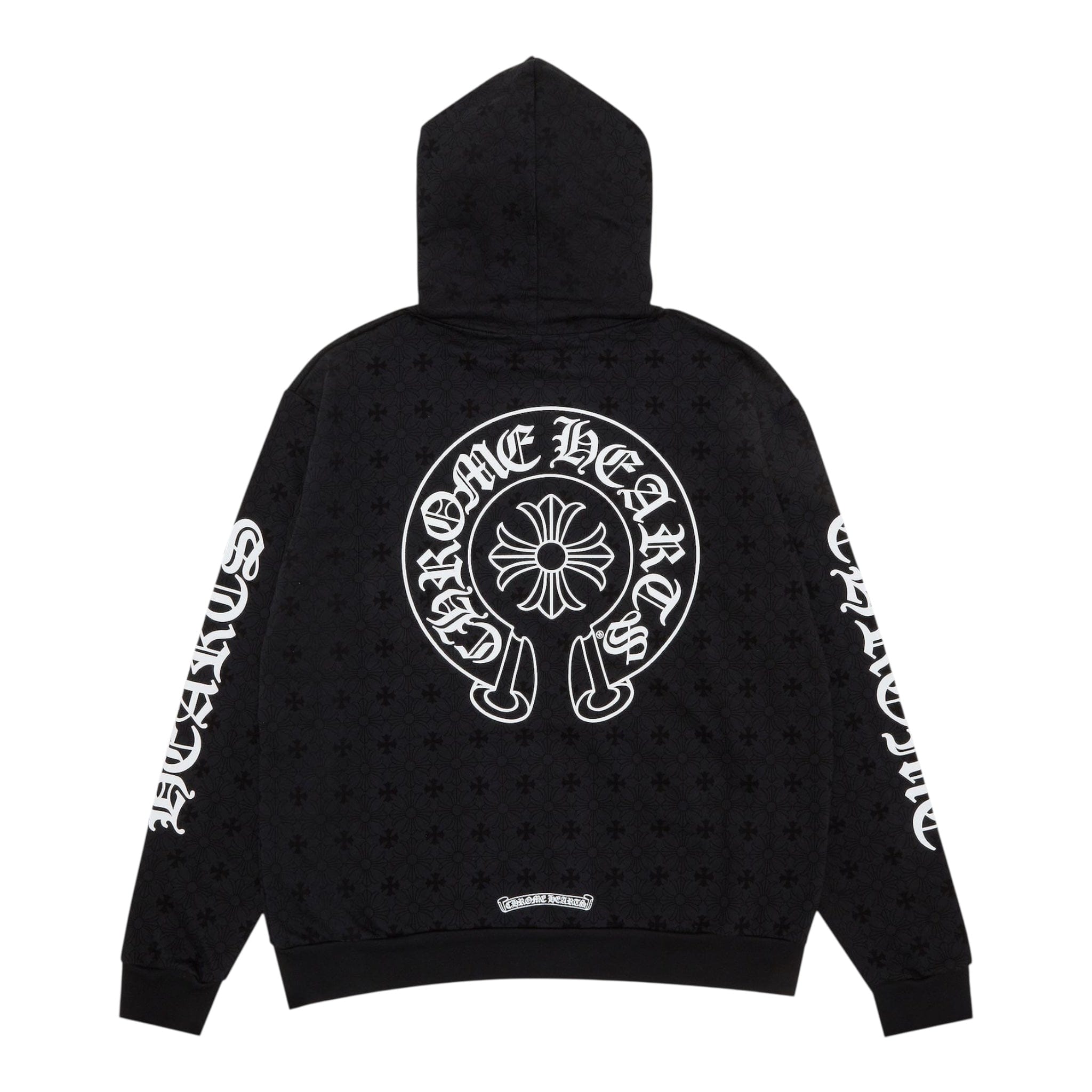 Chrome Hearts Sublimated Horseshoe Vertical Logo Hooded Sweatshirt Black White