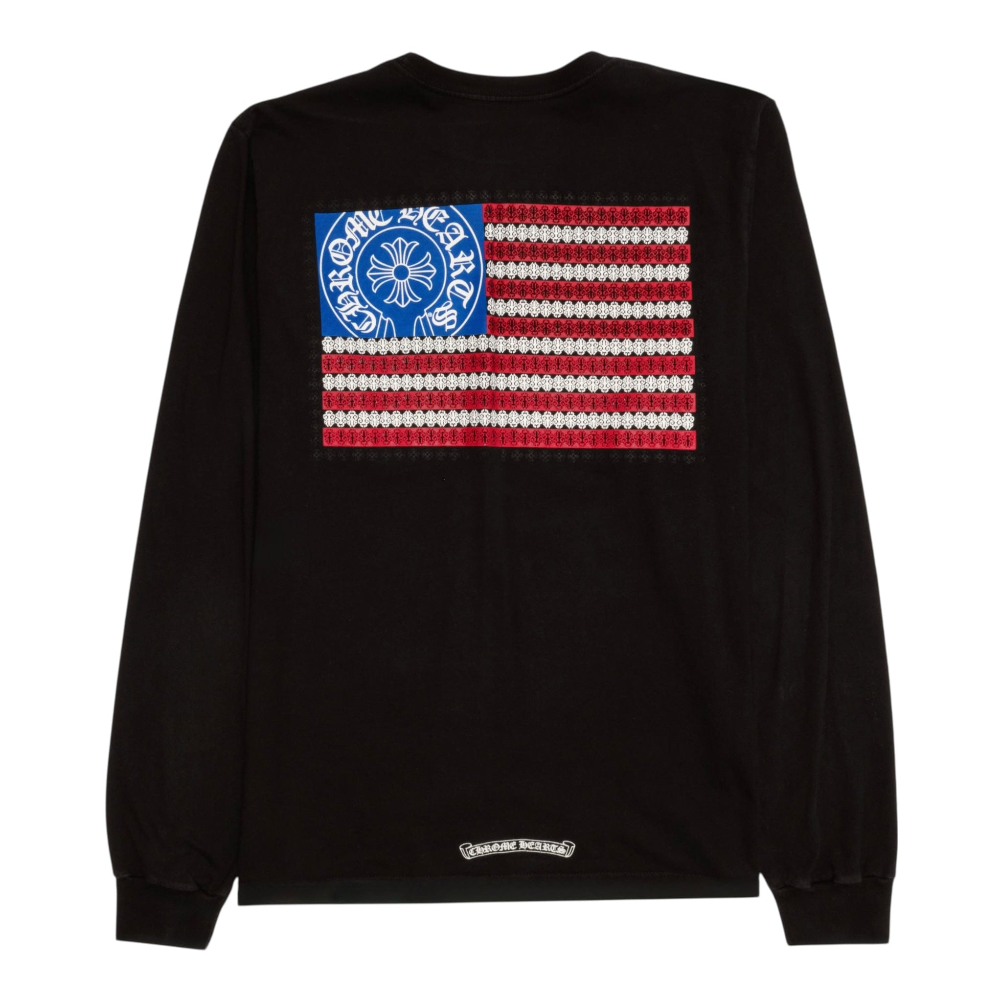 Chrome Hearts American Flag Horseshoe Dagger Logo Pocket Long Sleeve Tee Shirt Black Multi