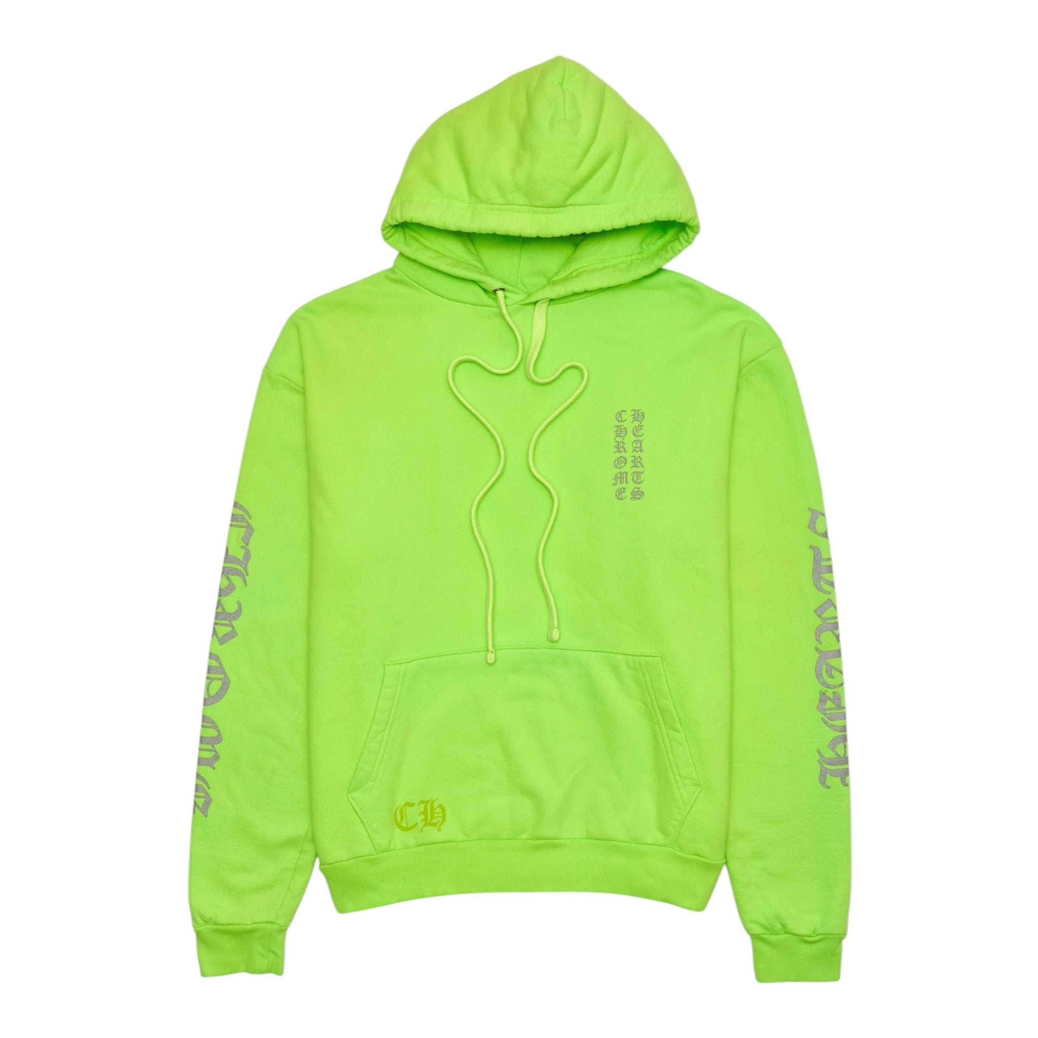 Chrome Hearts Vertical Logo Hooded Sweatshirt Neon Green Silver Pre-Owned