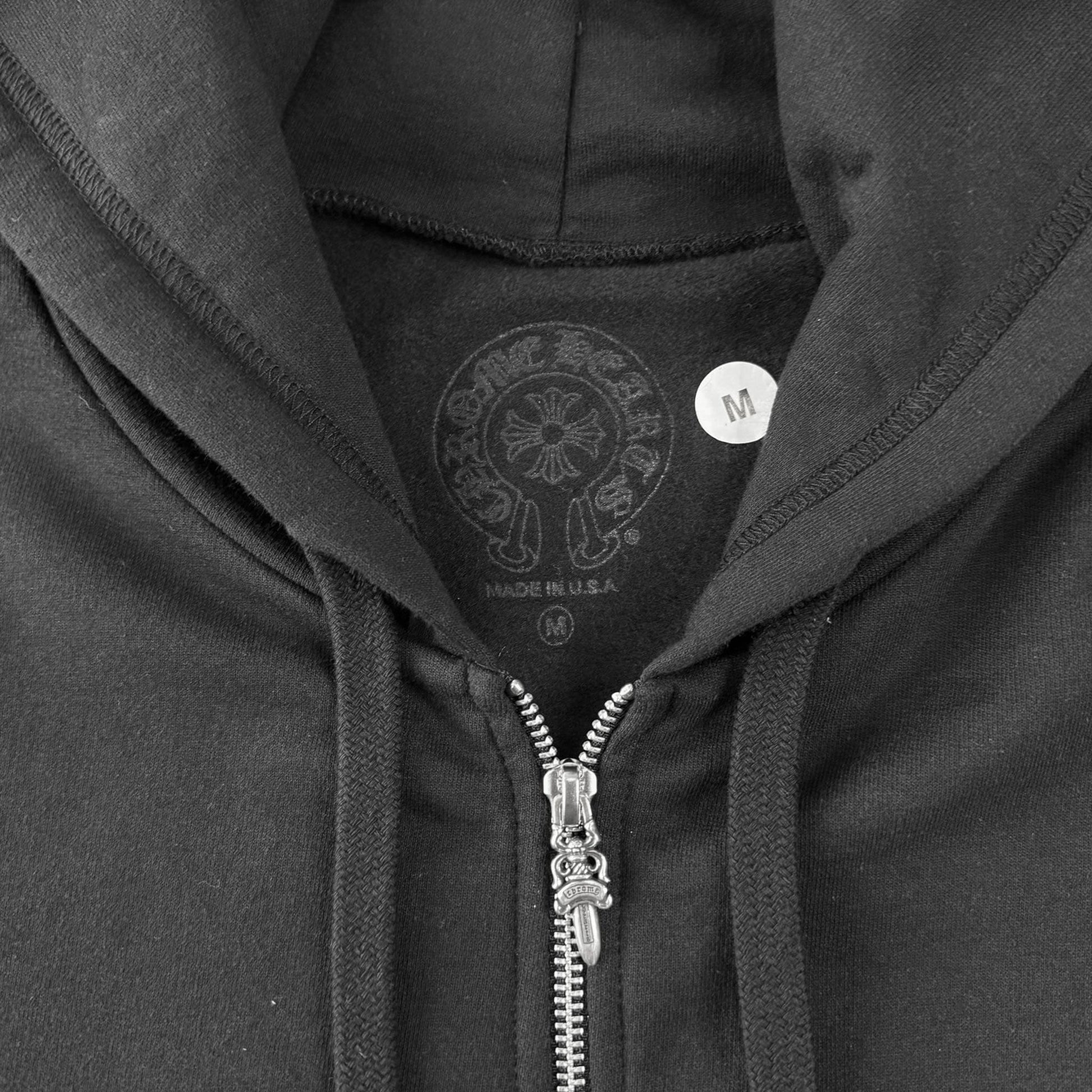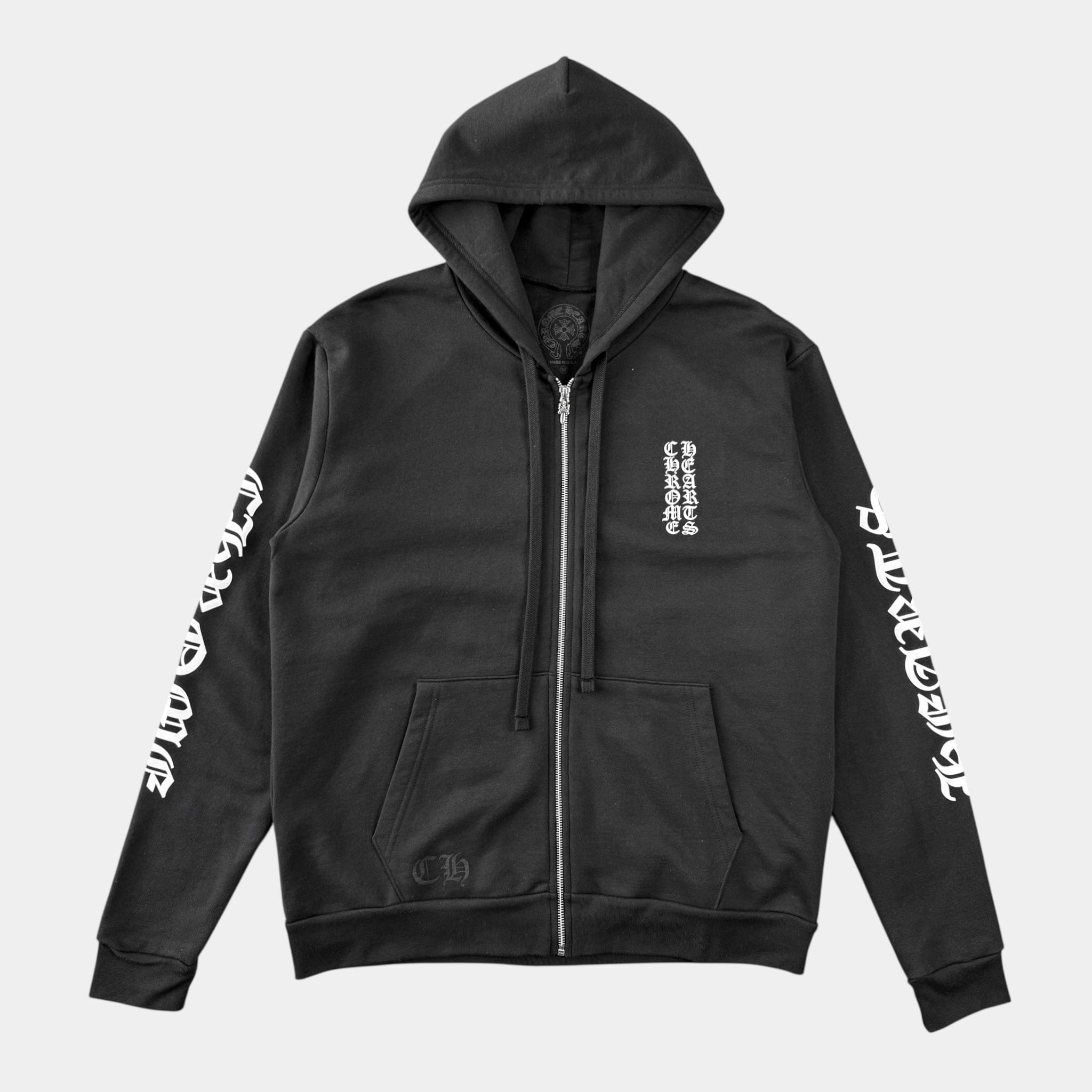 Chrome Hearts Vertical Logo Zip Up Hooded Sweatshirt Black White
