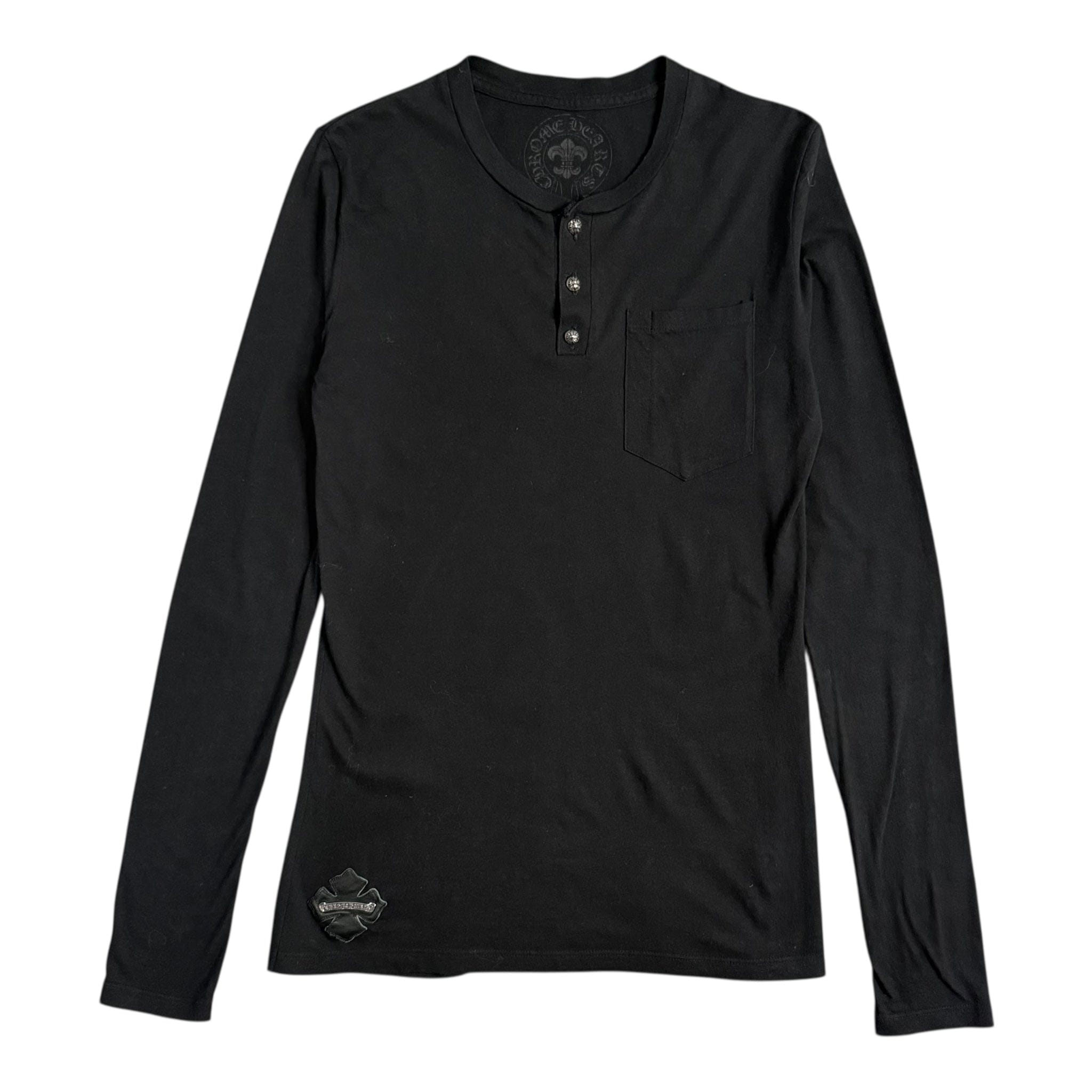 Chrome Hearts Vintage Leather Plus Patch Henley Long Sleeve Shirt Black