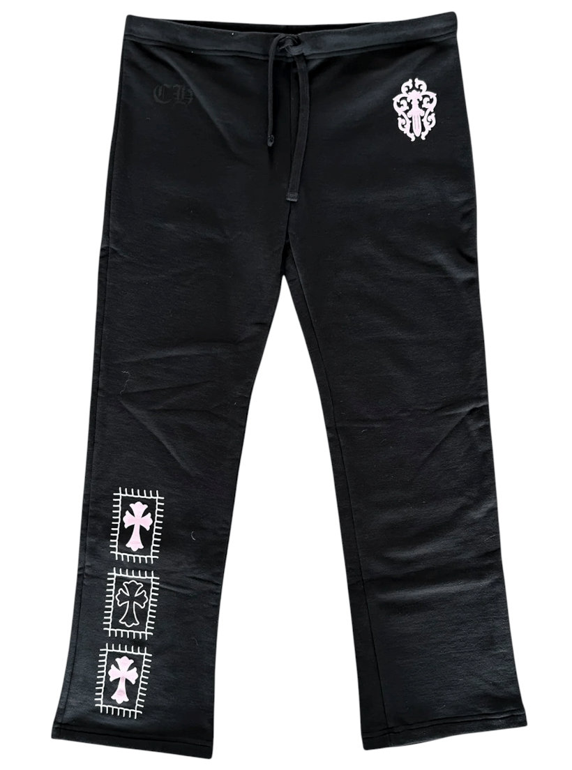 Chrome Hearts x Deadly Doll Dagger Logo Sweatpants Black White Pink