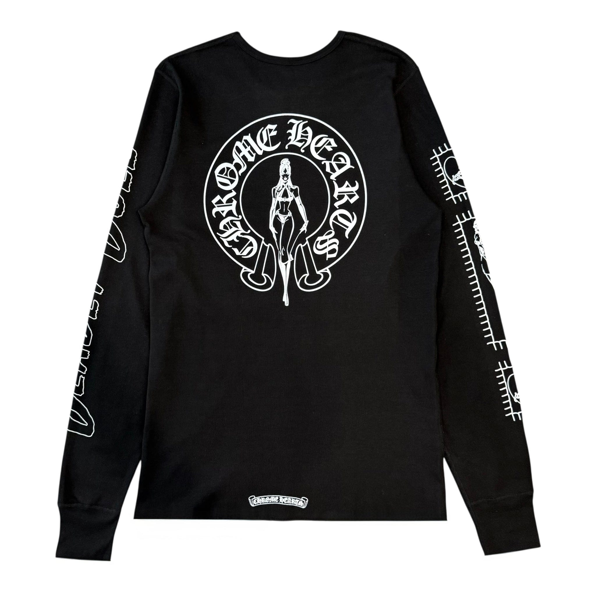 Chrome Hearts x Deadly Doll Horseshoe Dagger Logo Thermal Long Sleeve Tee Shirt Black White