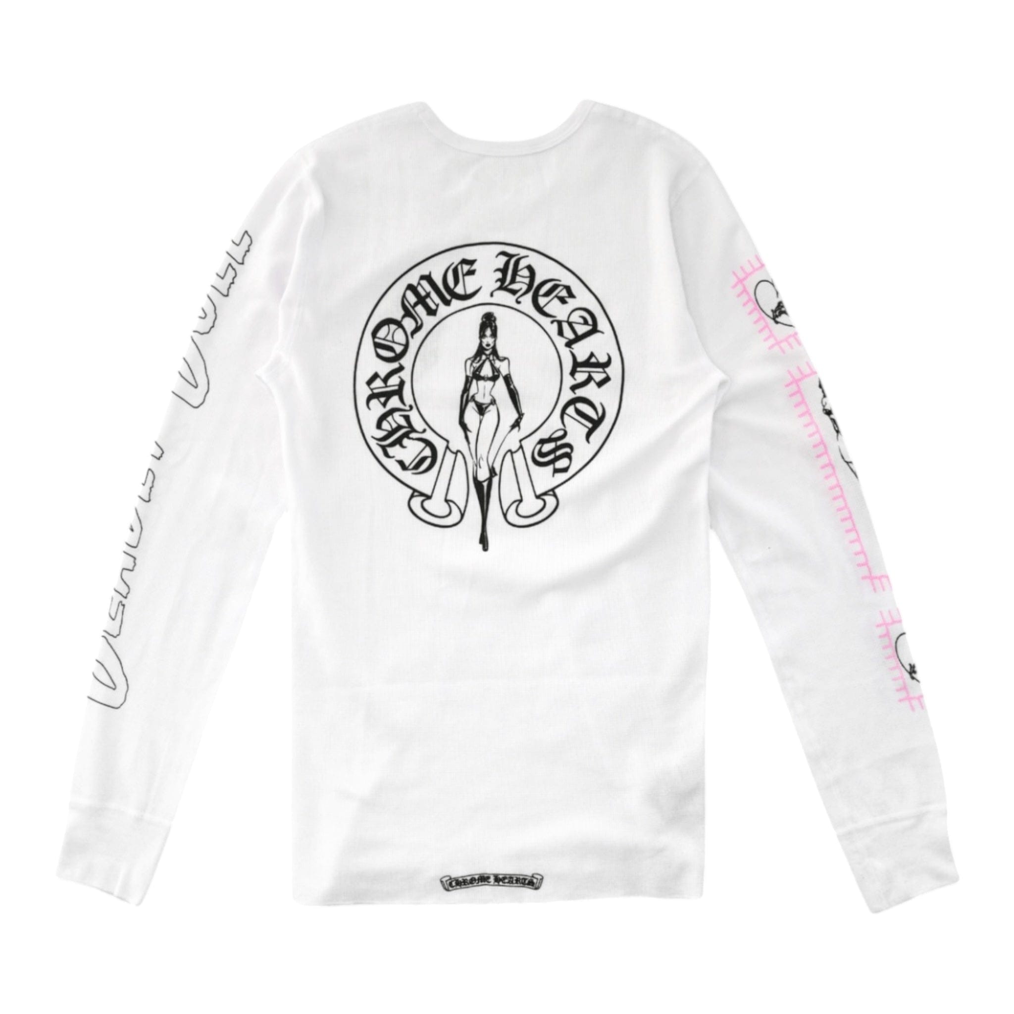 Chrome Hearts x Deadly Doll Dagger Thermal Long Sleeve Tee Shirt White Black Pink