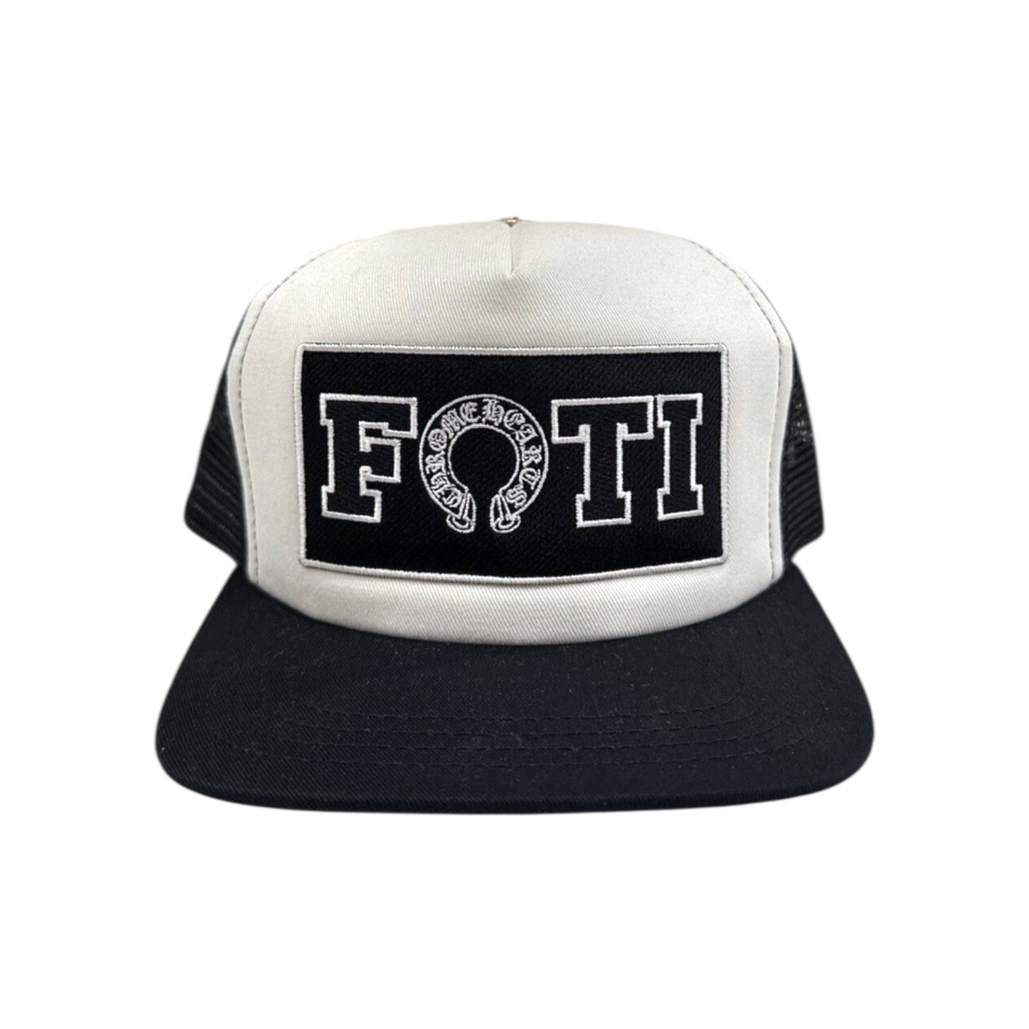 Chrome Hearts x Foti Logo Horseshoe Patch Trucker Hat Black White