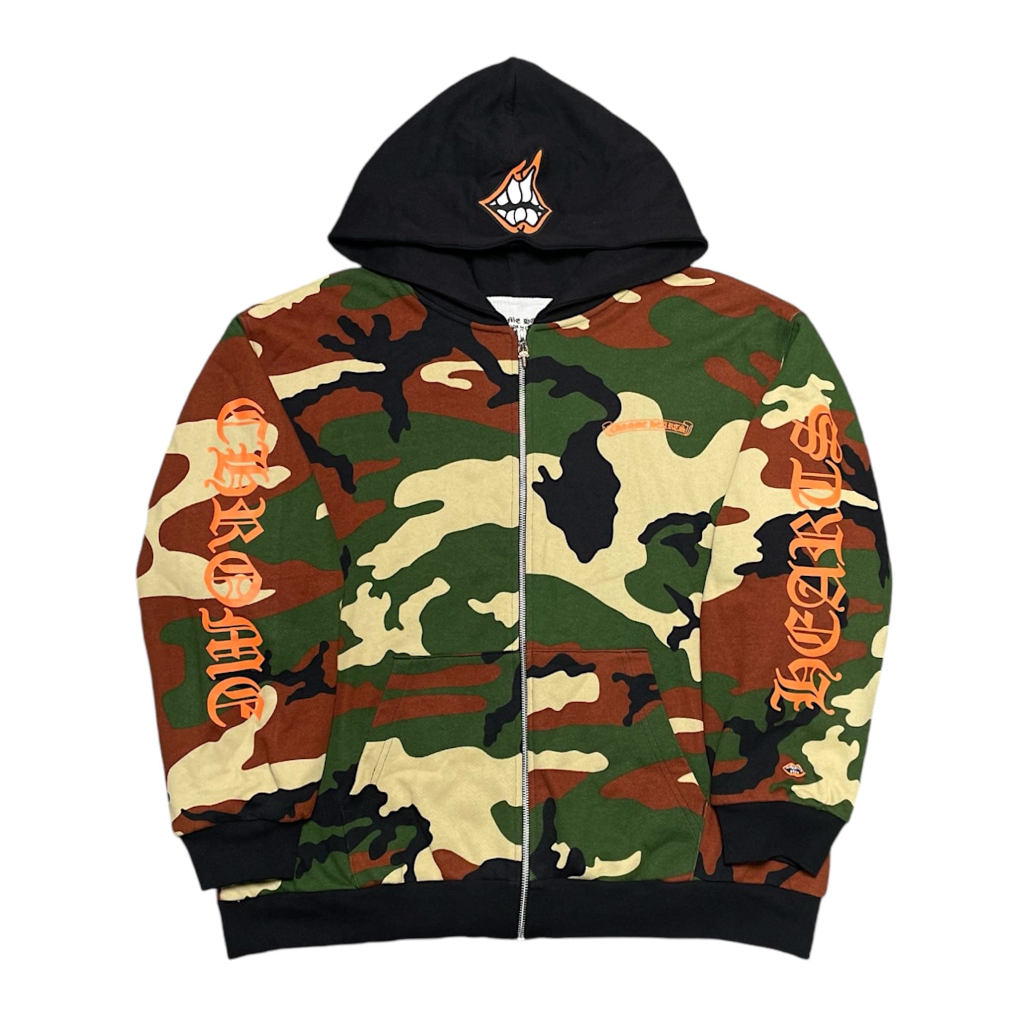 Chrome Hearts x Matty Boy Caution Logo Zip Up Thermal Lined Hooded Sweatshirt Camo Multi