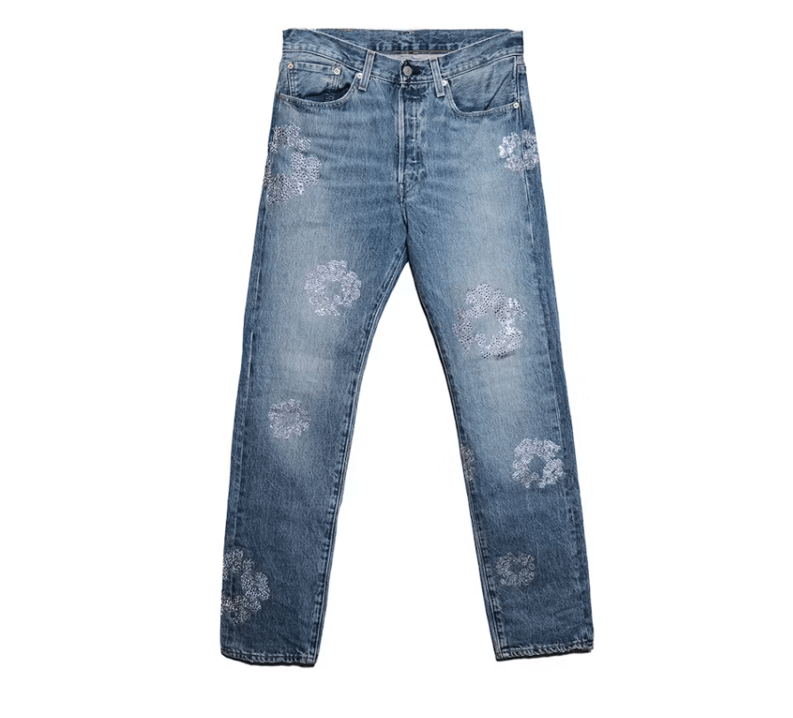 Denim Tears Bust Down Swarovski Tears 501 Jeans Light Wash