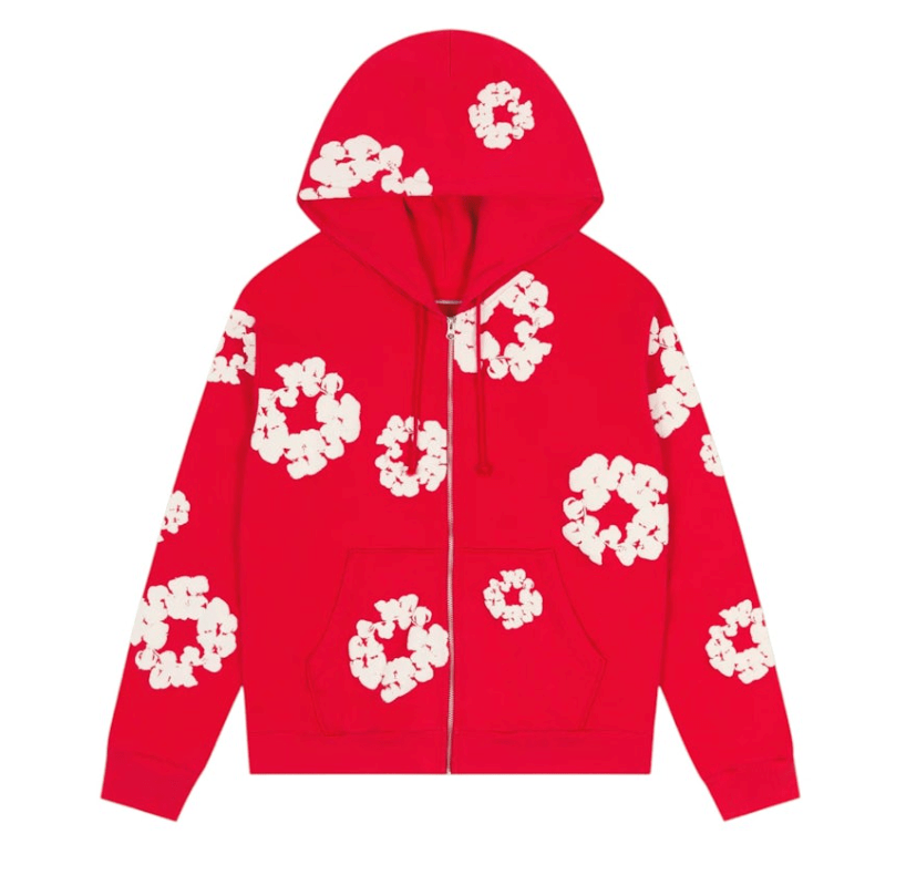 Denim Tears Cotton Wreath Zip Up Hooded Sweatshirt Red White