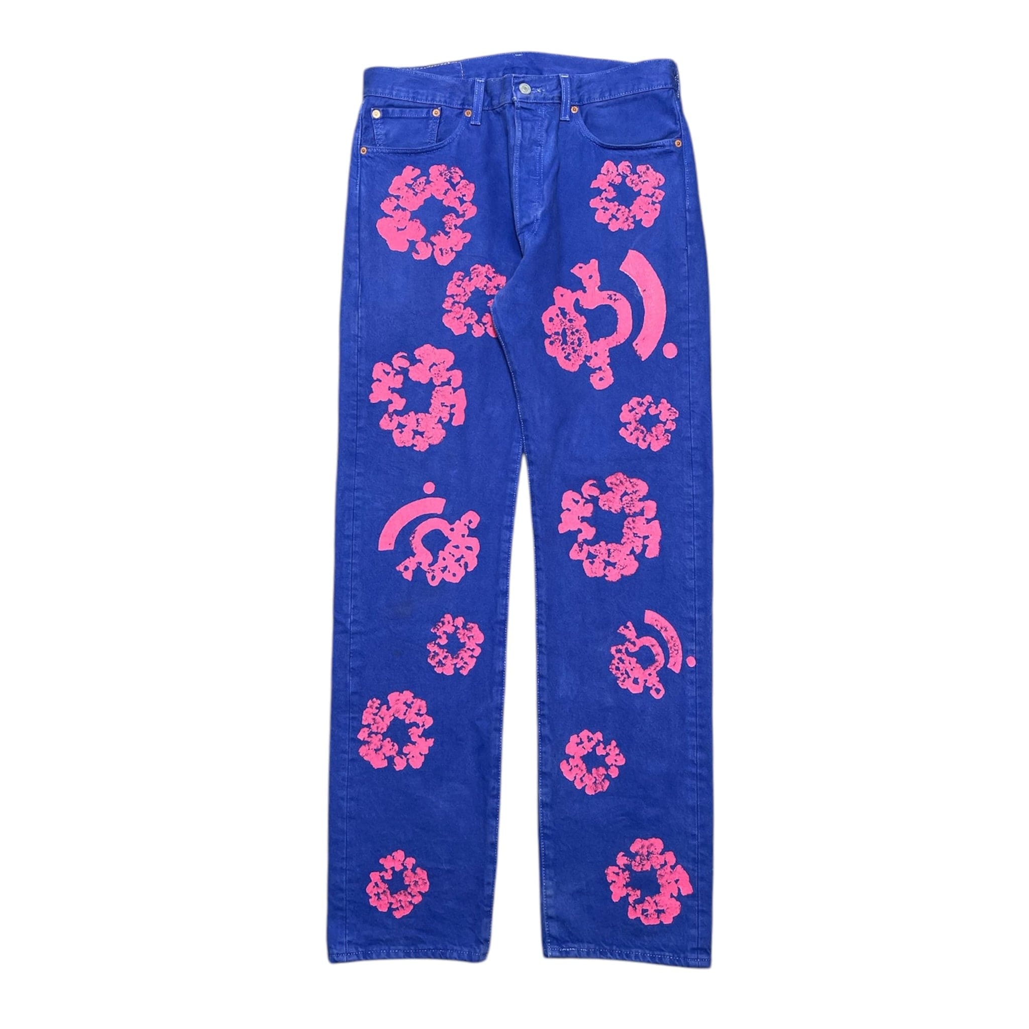 Denim Tears x Bstroy Levi’s 501 Cotton Wreath Logo Jeans Blue Pink