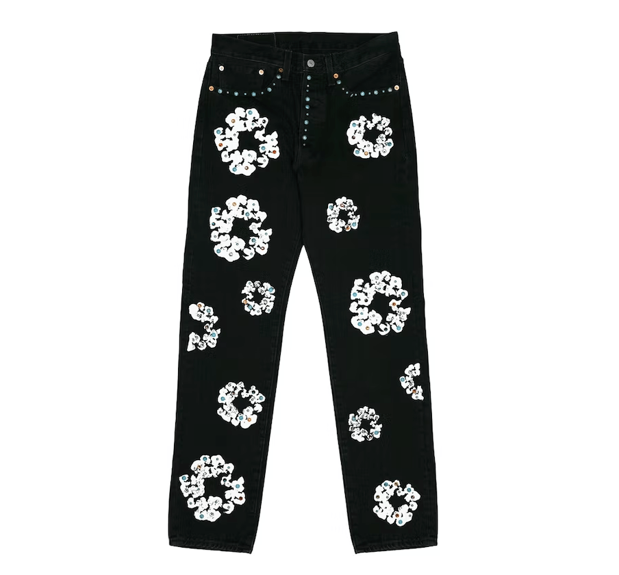 Denim Tears x Levi's 501 Rhinestone Cotton Wreath Logo Jeans Black White