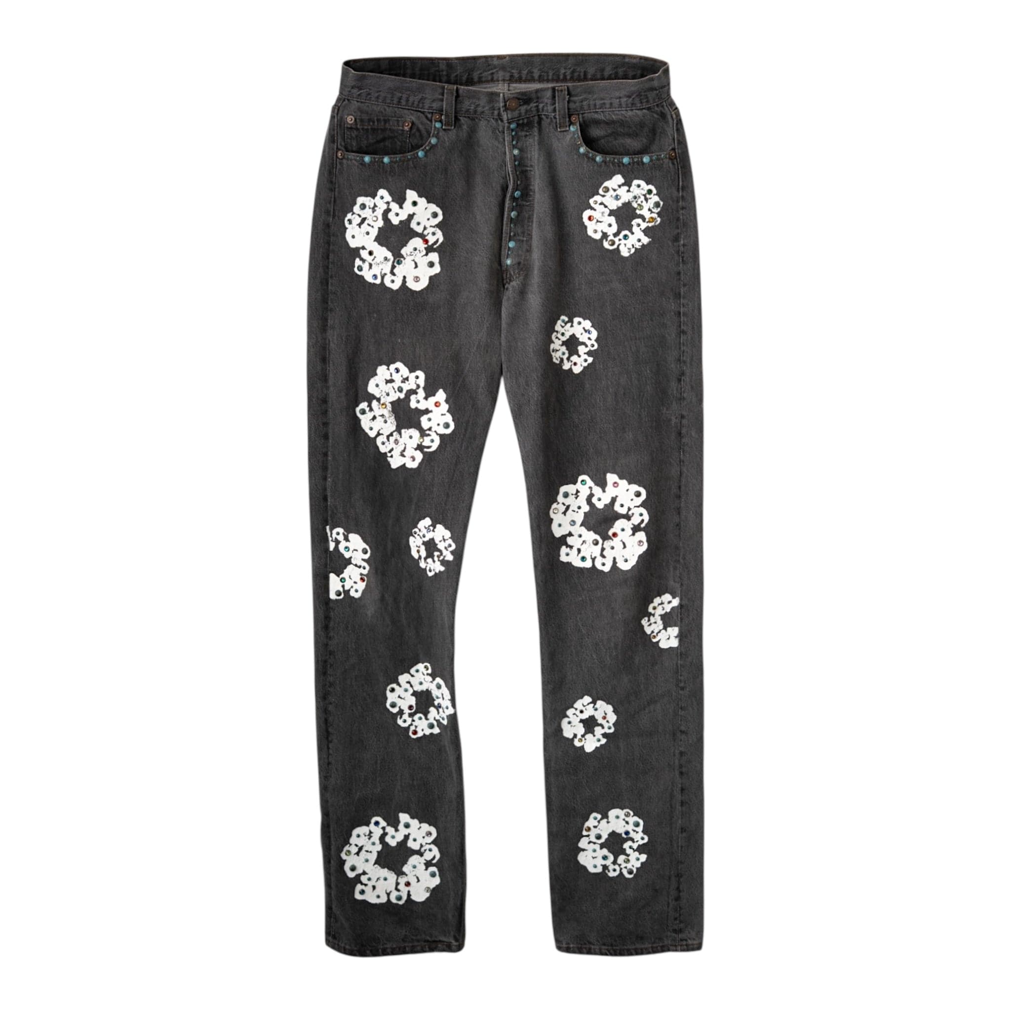 Denim Tears x Levi's 501 Rhinestone Cotton Wreath Logo Jeans Grey White