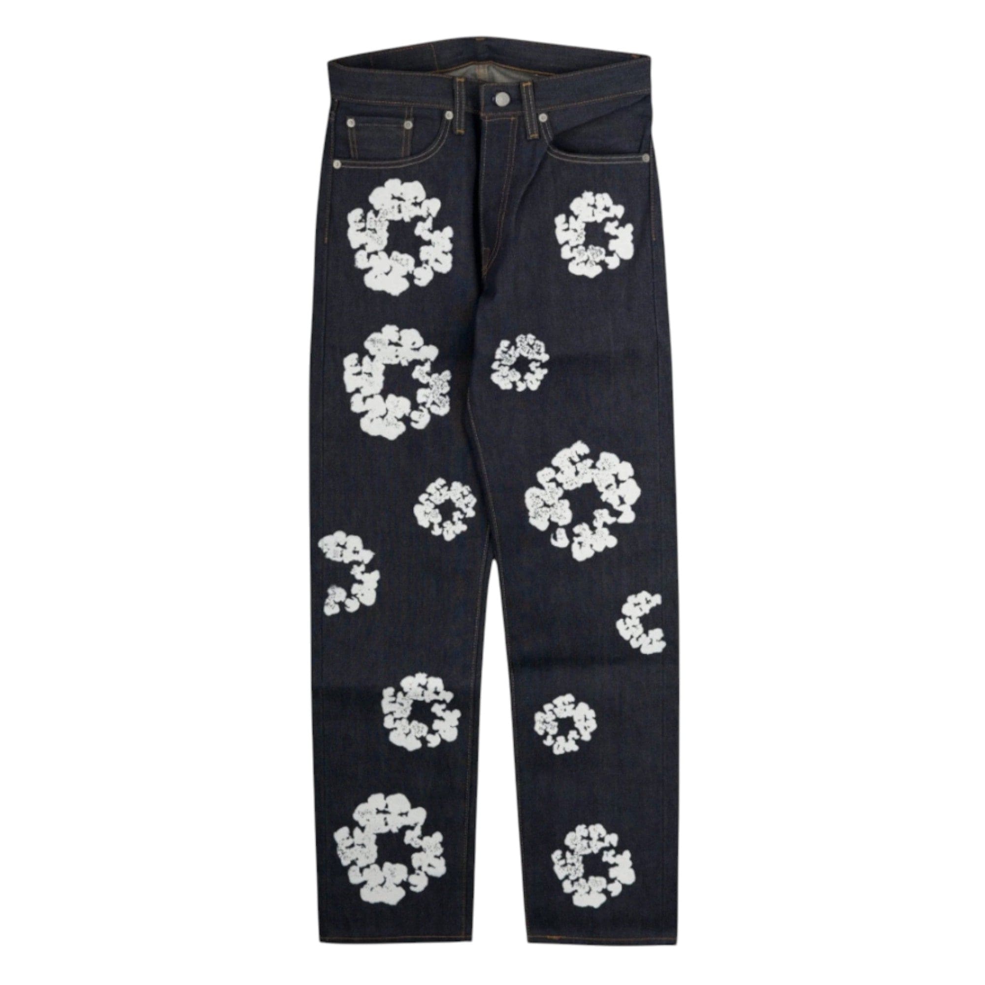 Denim Tears x Levi's 501 Cotton Wreath Logo Jeans Selvedge Indigo White
