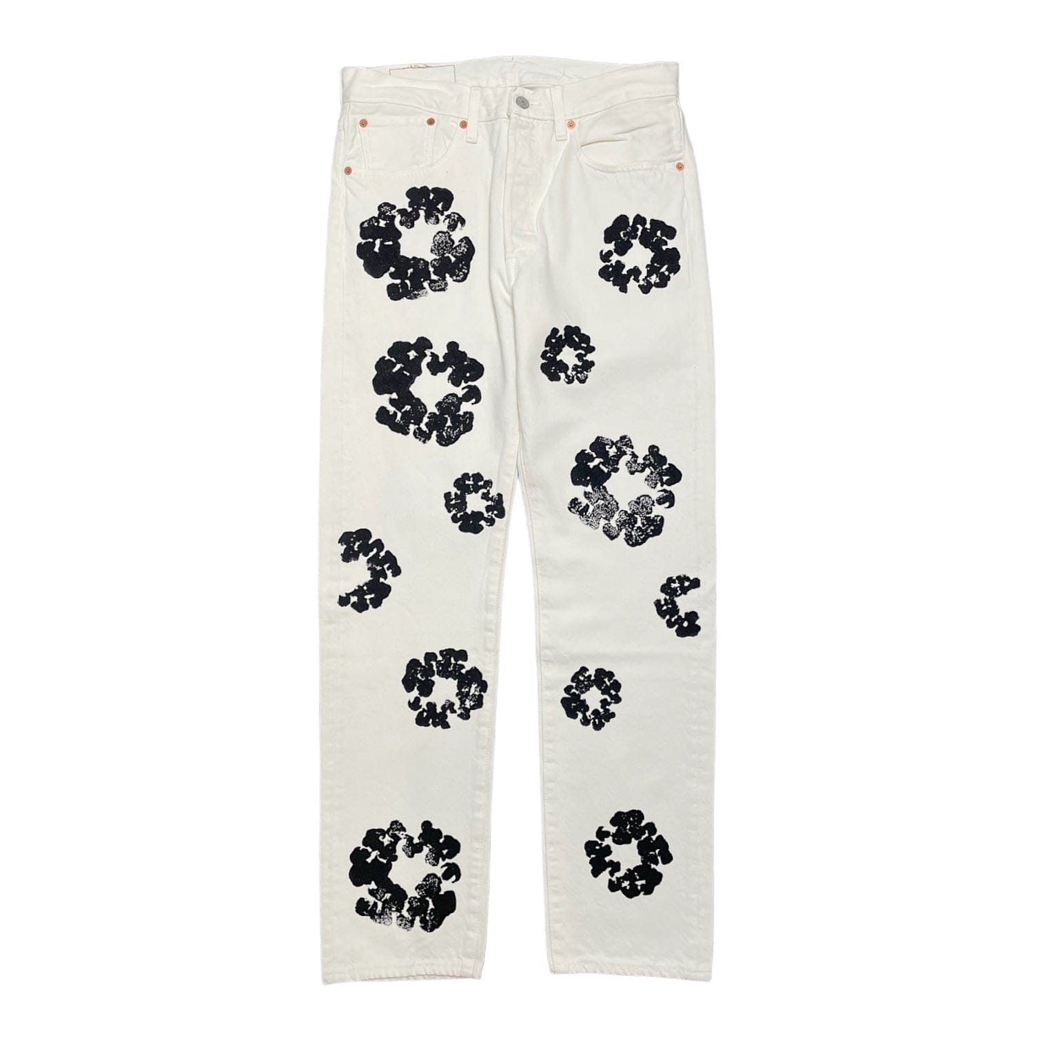 Denim Tears x Levi's 501 Cotton Wreath Logo Jeans White Black