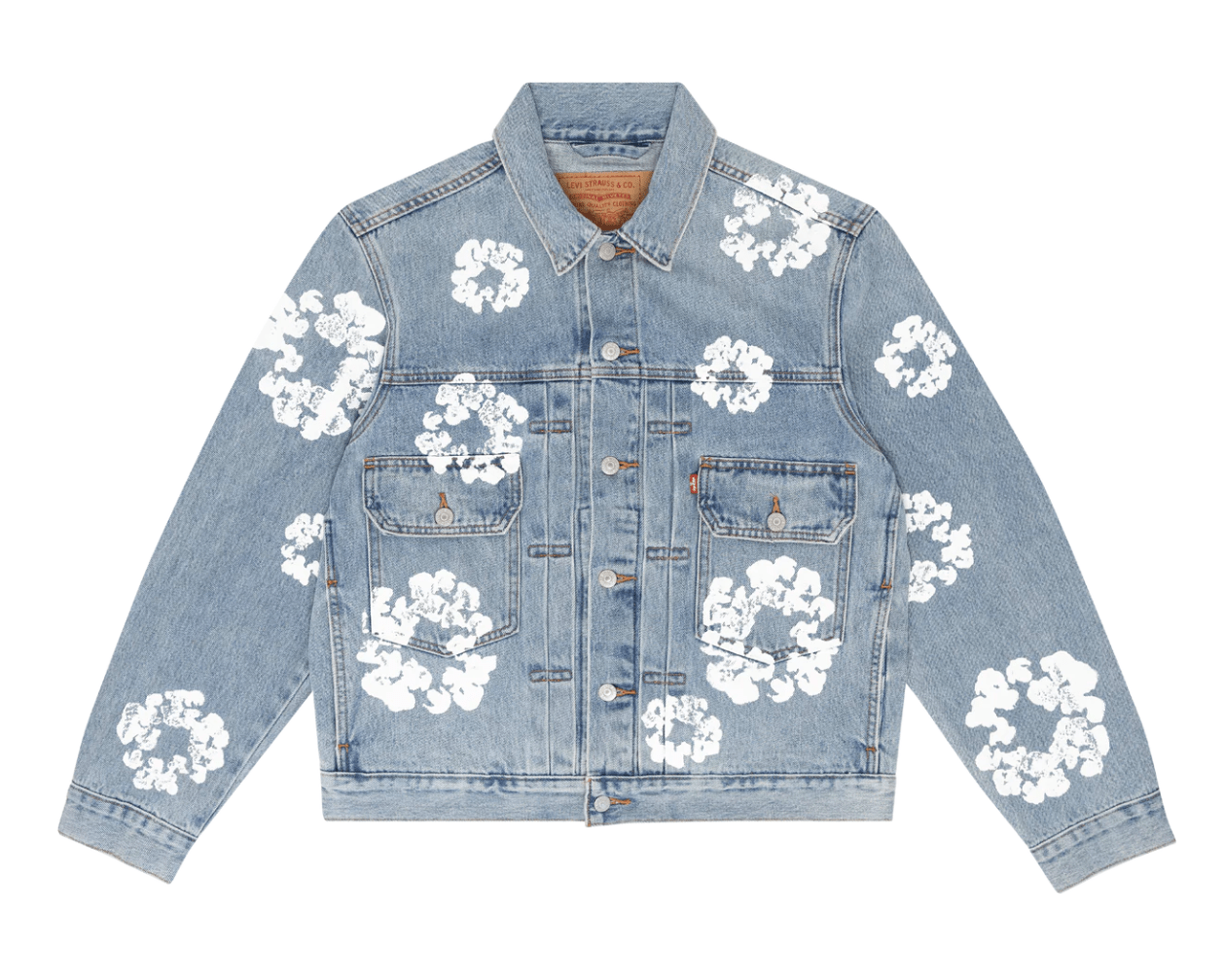 Denim Tears x Levi's The Cotton Wreath Logo Denim Jacket Light Wash Indigo White