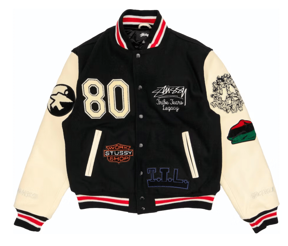 The Stussy x Denim Tears X Our Legacy TTL Varsity Jacket released on December 3rd, 2021, for the retail price of $550.
