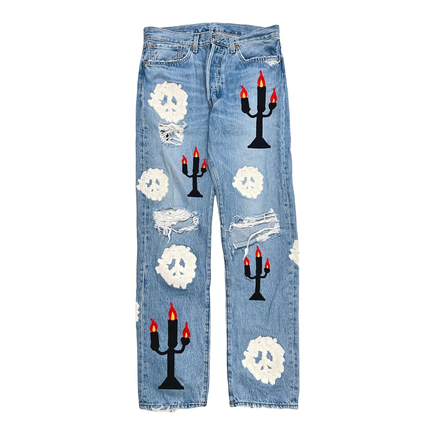 Denim Tears x Levi’s 501 Virgil Abloh "Message in a Tear" Embroidered Jeans indigo Multi