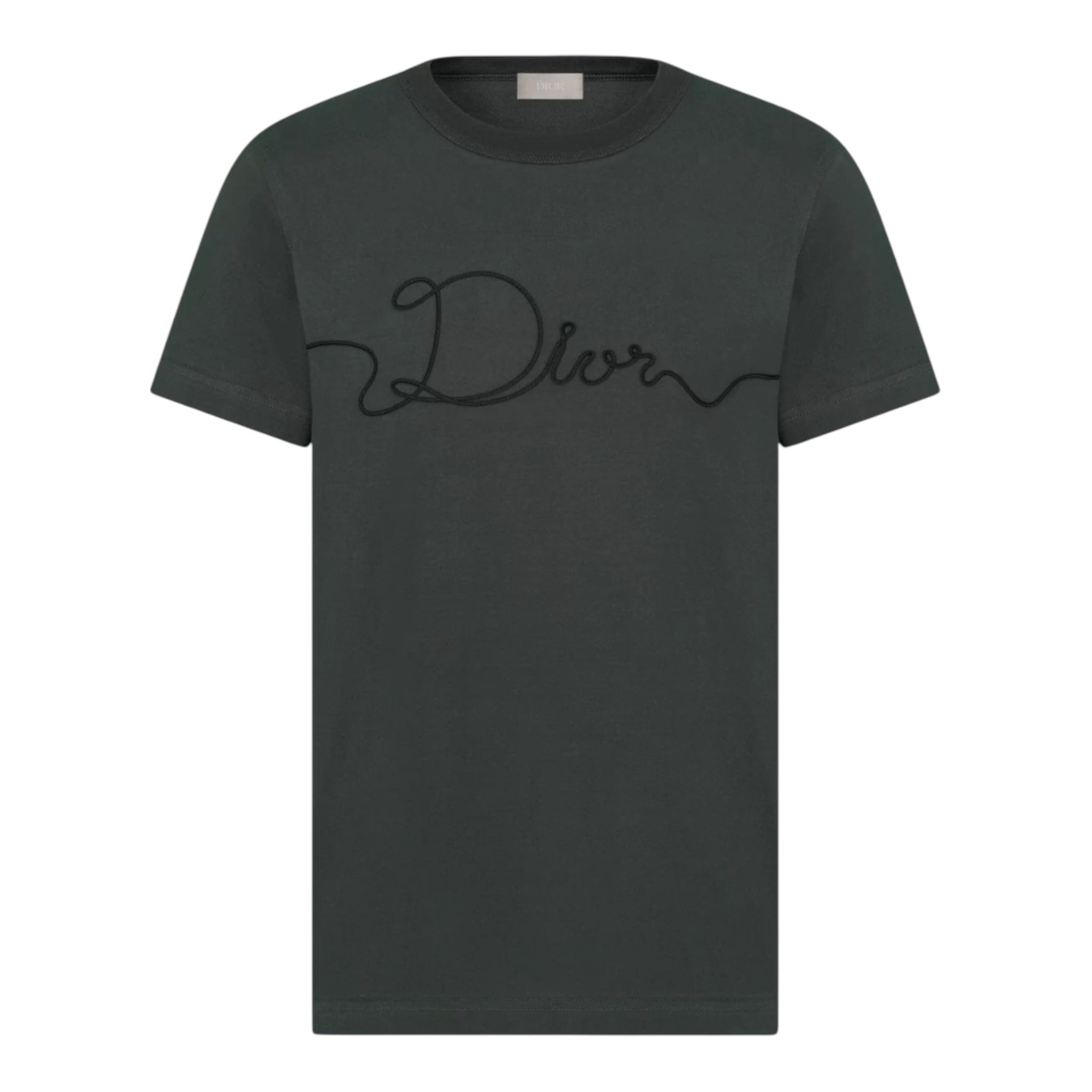 Dior Ribbon Logo Short Sleeve Tee Shirt Deep Grey