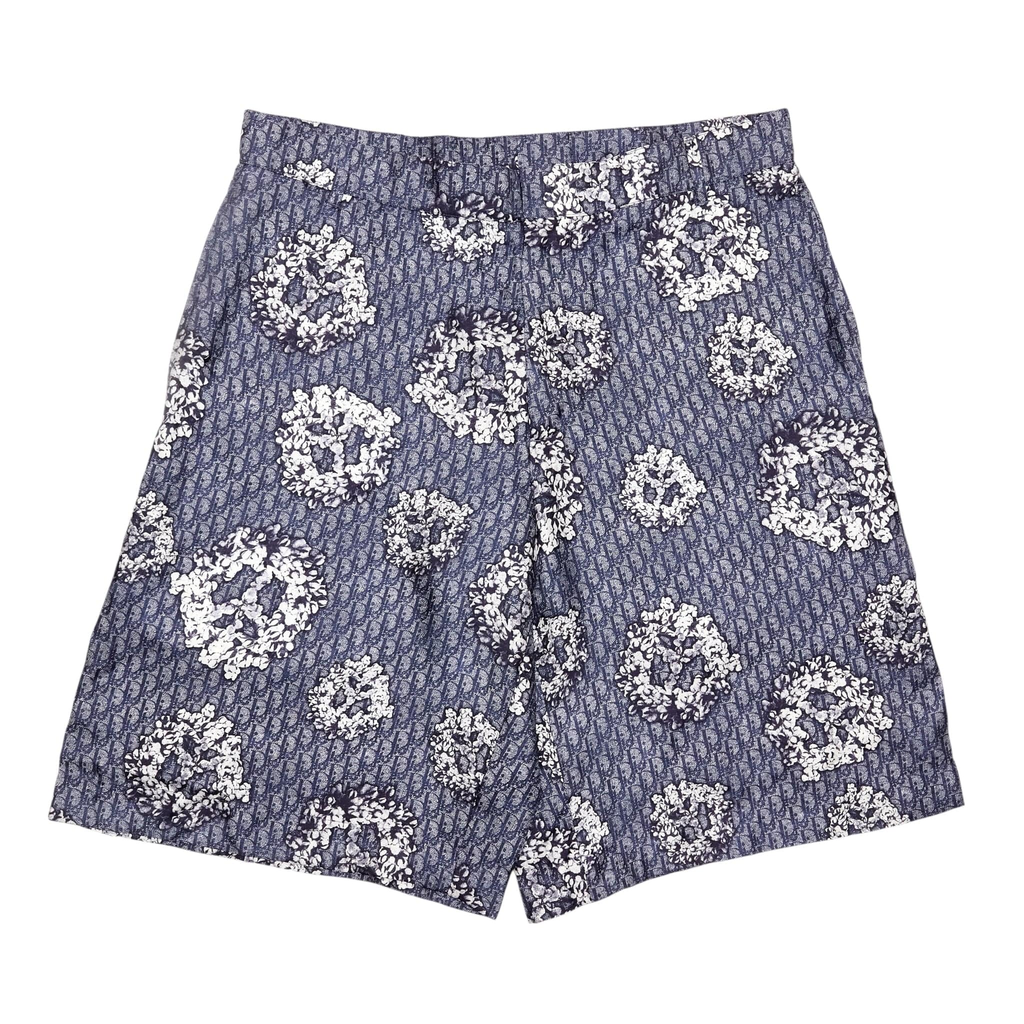 Part of the DIOR TEARS collaboration, the Bermuda shorts offer a seasonal interpretation of a timeless garment. Crafted in blue silk twill with the Dior Oblique motif and layered with printed cotton flowers representing the Peace Sign motif, a signature of the Dior Tears collaboration, they feature side welt pockets and a rear patch pocket. The Bermuda shorts present a mid-rise, laid-back silhouette, and can be paired with the matching shirt to complete the look.