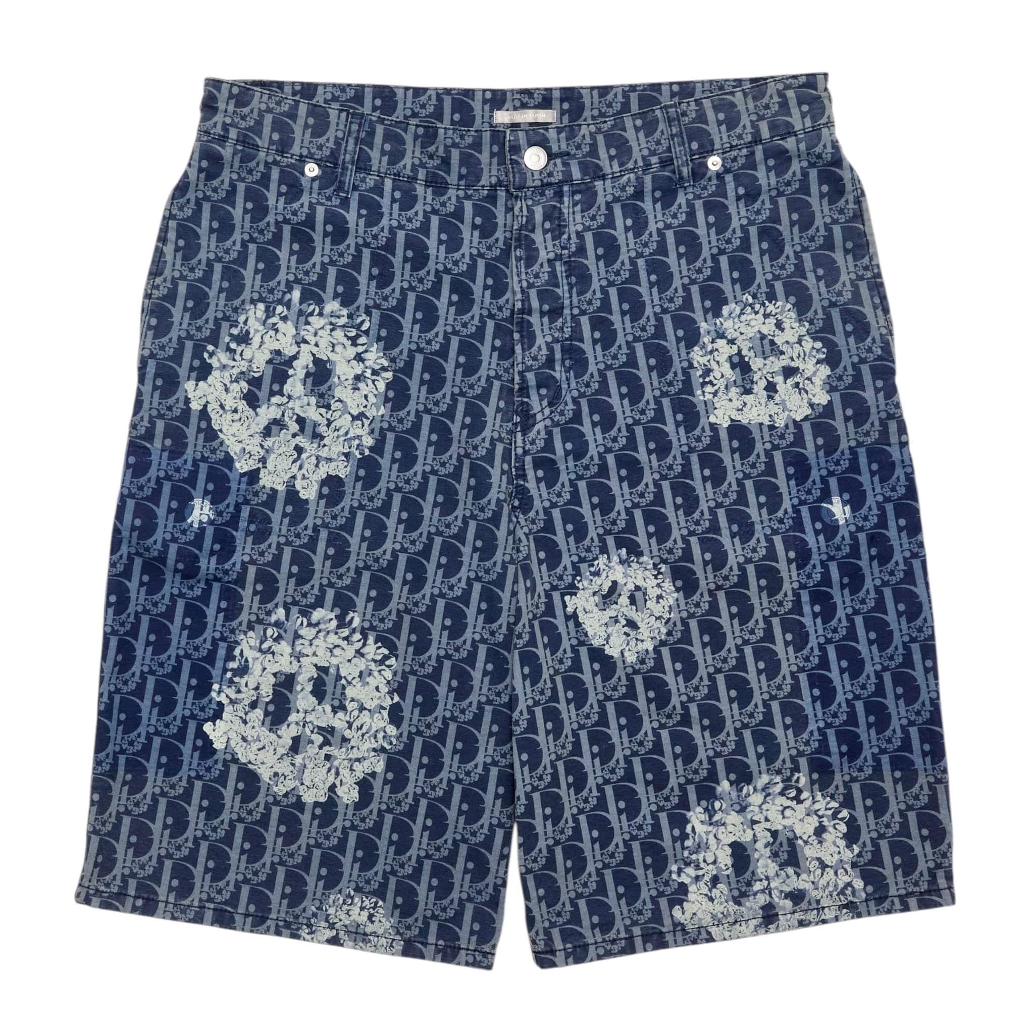 Dior x Denim Tears Cotton Wreath Oblique Logo Bermuda Shorts Indigo Multi