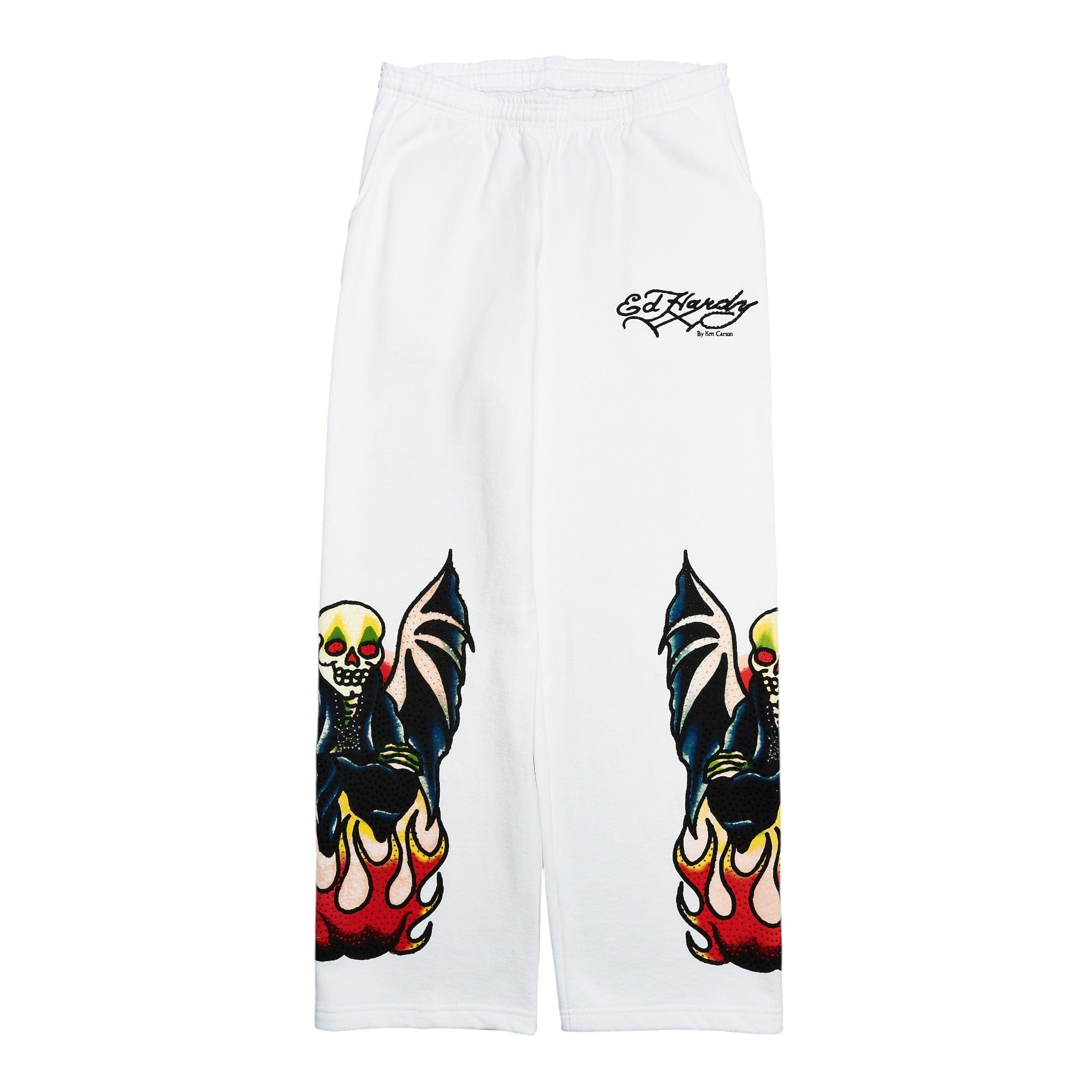 Ed Hardy x Ken Carson XMan Logo Rhinestone Studded Sweatpants White Multi