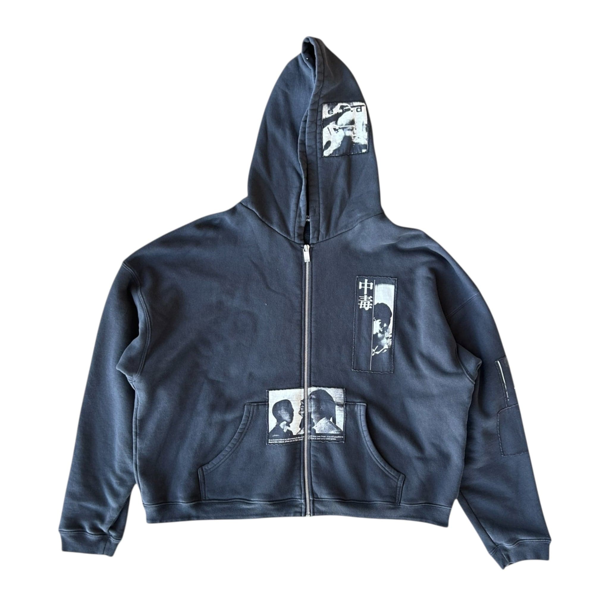Enfants Riches Déprimés Madonna Assemblage Zip Up Hooded Sweatshirt Washed Black White
