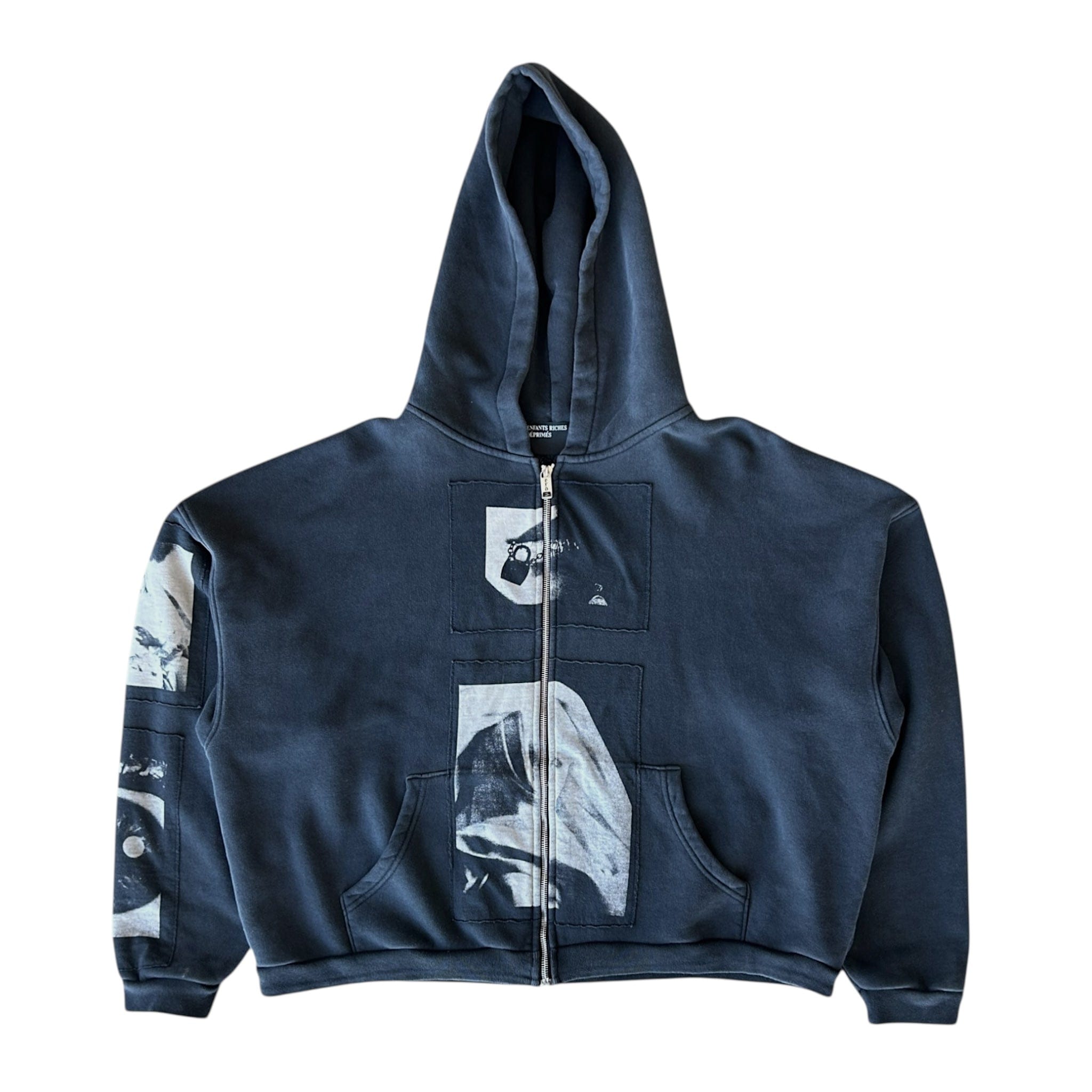 Enfants Riches Déprimés Madonna Assemblage Zip Up Hooded Sweatshirt Washed Black White