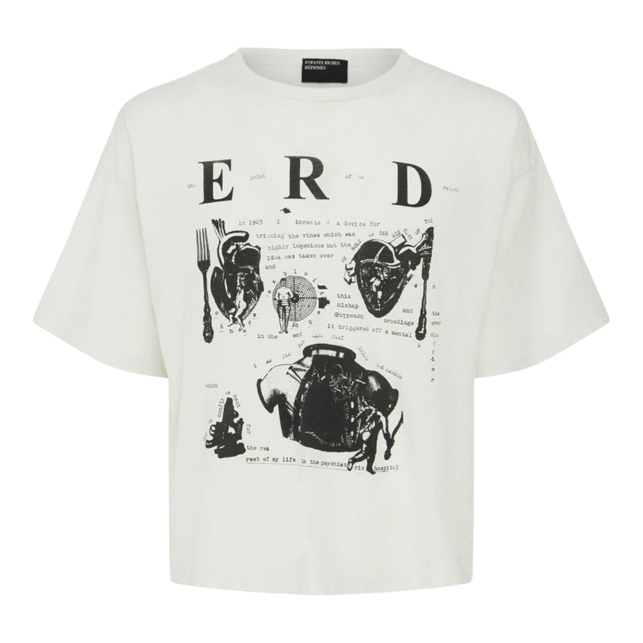 Enfants Riches Déprimés My Role in The War Logo Short Sleeve Tee Shirt Faded Ivory Black