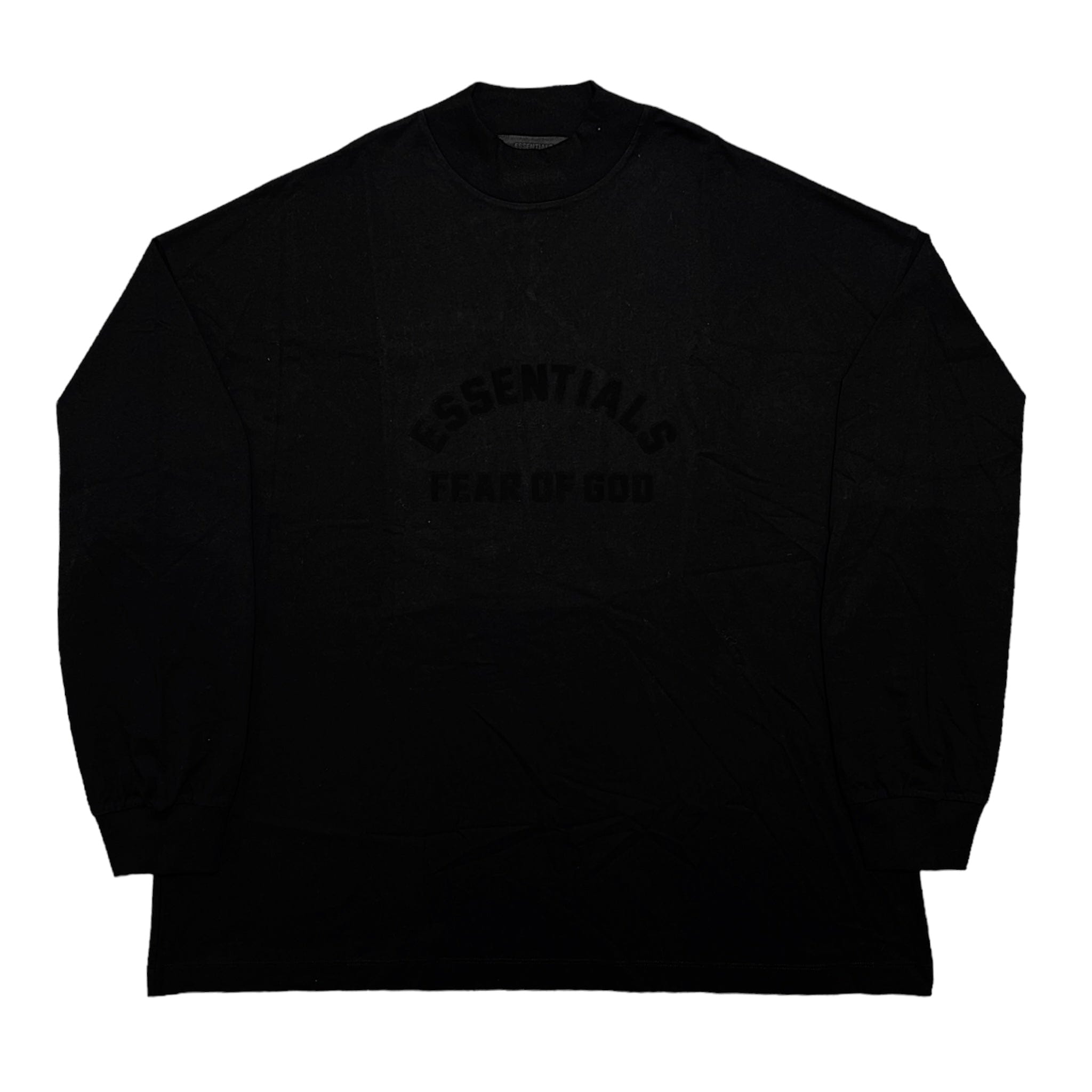 The Essentials LS tee shirt has been redesigned with increased volume in the body and sleeves, providing additional drape and comfort. A revised rib-knit collar sits higher on the neckline to add formality. The curved Essentials Fear of God logo is vintage-inspired but updated in a rubberized soft-touch applique. A new Fear of God rubberized label is at the back collar.
