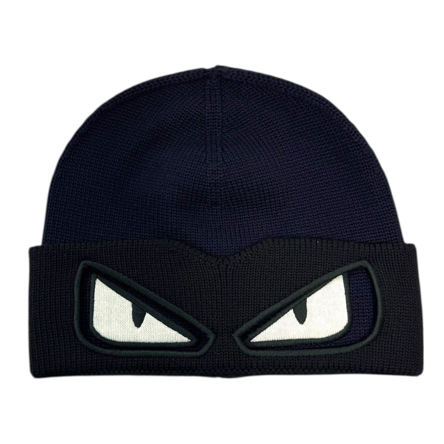 Fendi Embroidered Bad Bugs Monster Eyes Beanie Navy Blue Black White
