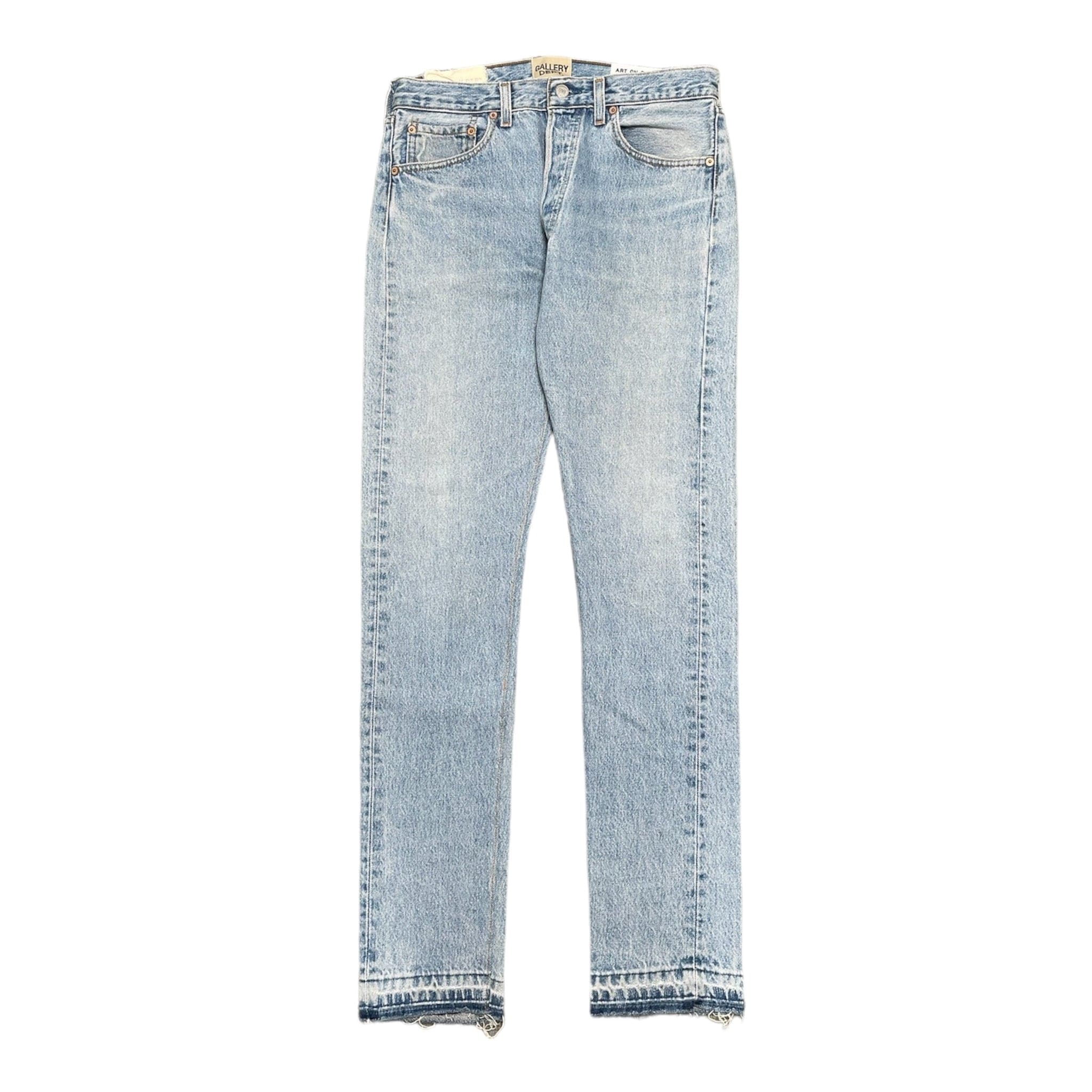 We begin with a vintage pair of Levi’s 501s that we've hand-selected for their wash and level of distressing. Each pair is re-cut and re-fitted for a slimmer fit and narrower leg opening. We strive to make each pair unique by utilizing techniques like reinforcing rips, and darning, leaving no two pairs the same.