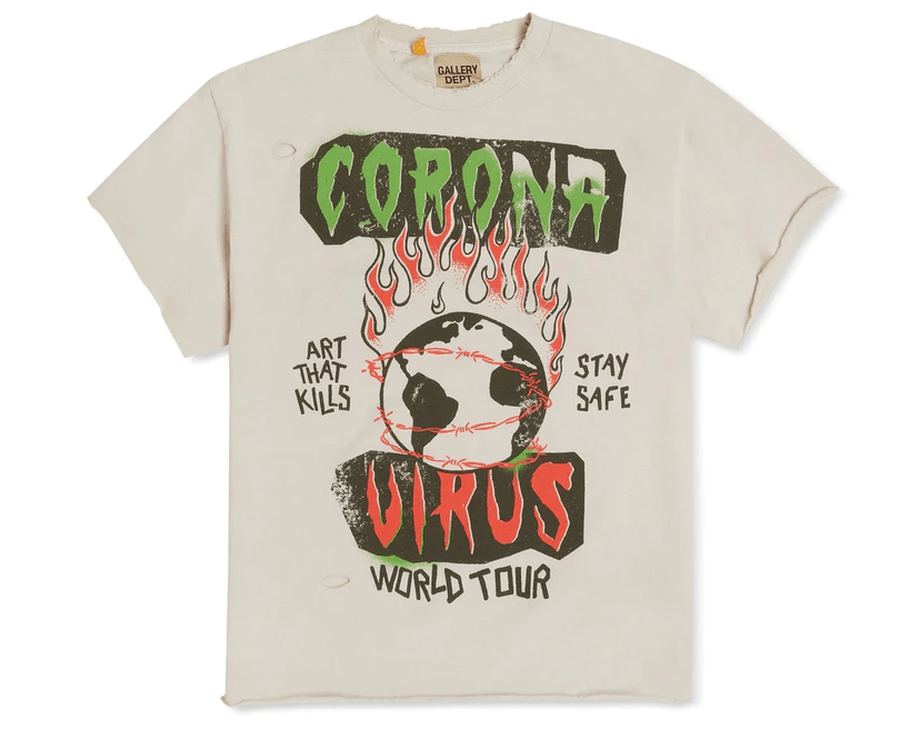 Gallery Department Corona Virus Logo Short Sleeve Tee Shirt Cream Multi