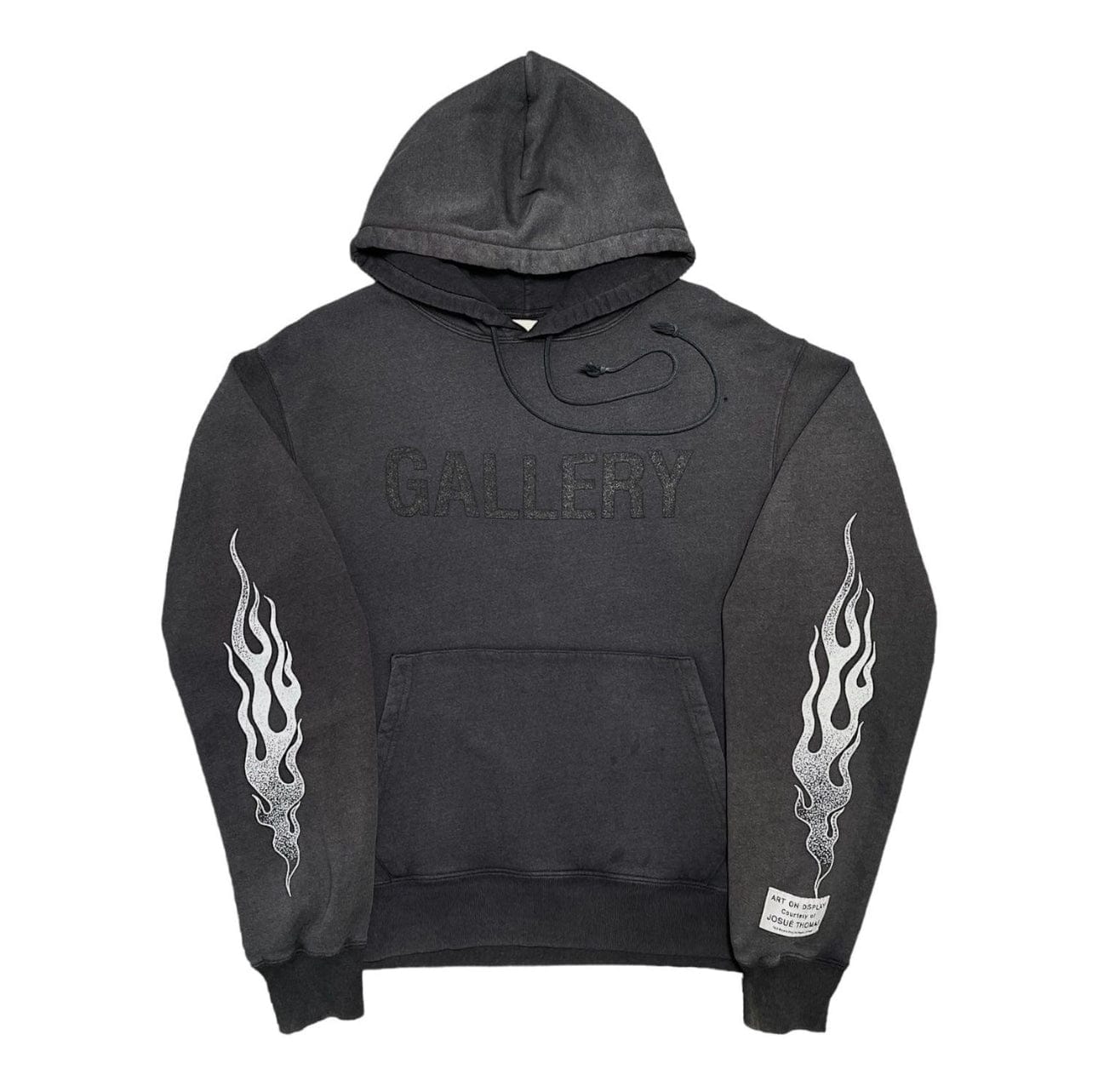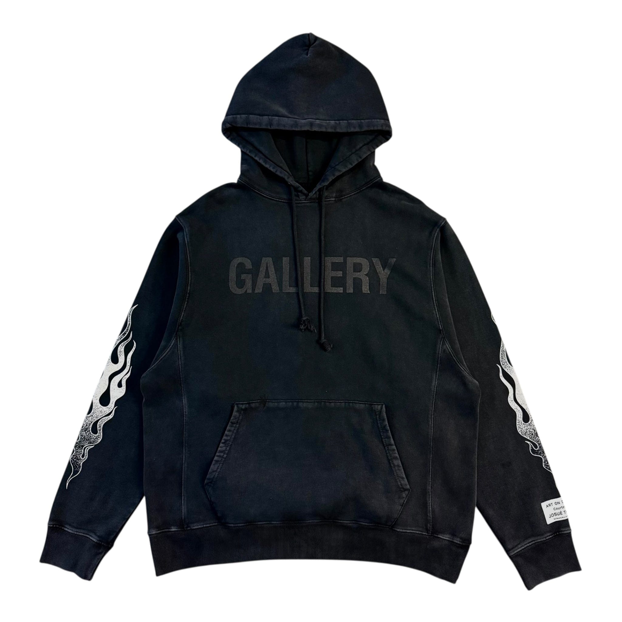 Gallery Department Flames DEPT Logo Hooded Sweatshirt Washed Black White