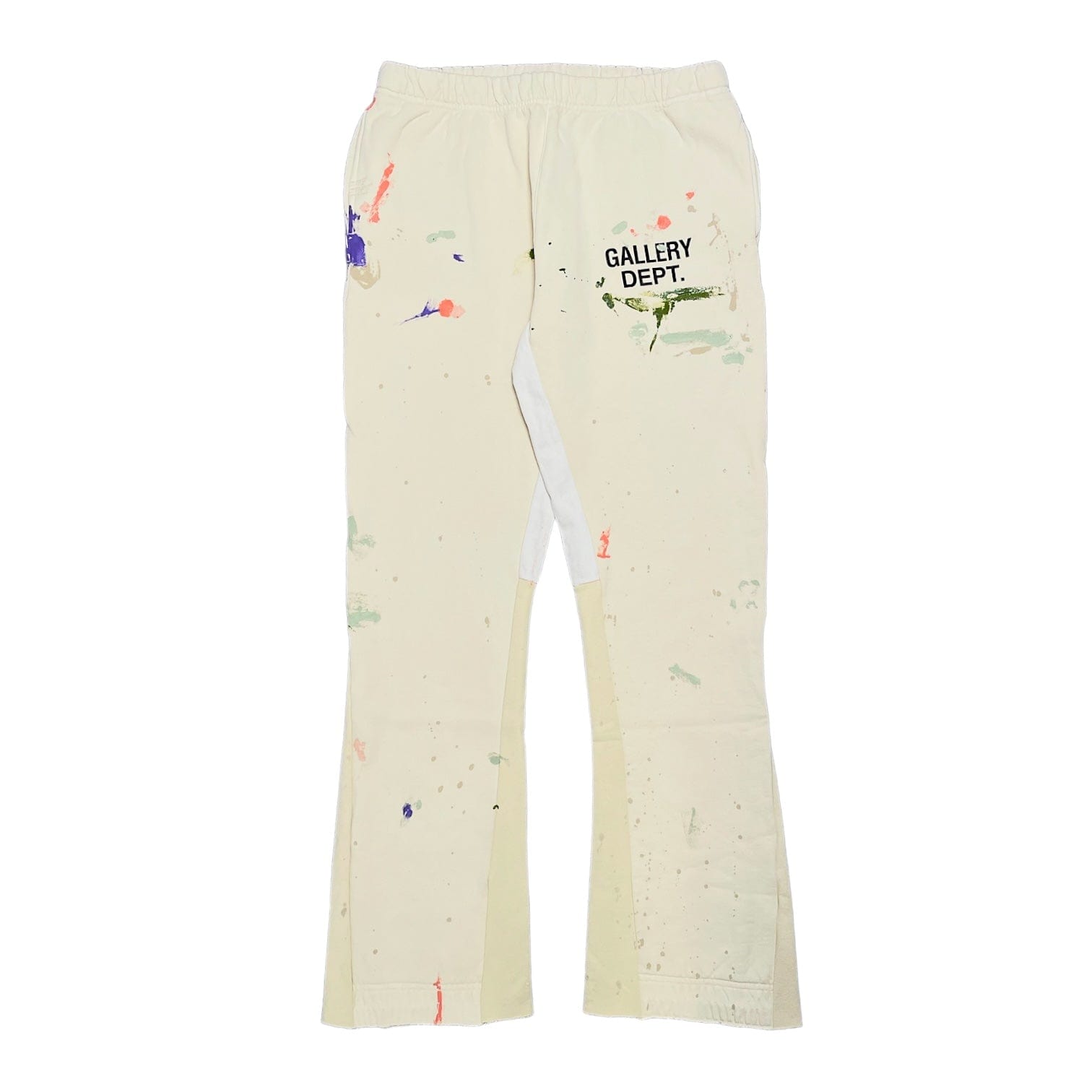 Our take on a traditional sweatpant - tailored from reconstructed panels to emit a prominent flare around the hems using additional paneling. Each garment has been adorned with our GALLERY DEPT. logo mark above the right knee, as well as hand-painted in our studio in Los Angeles.