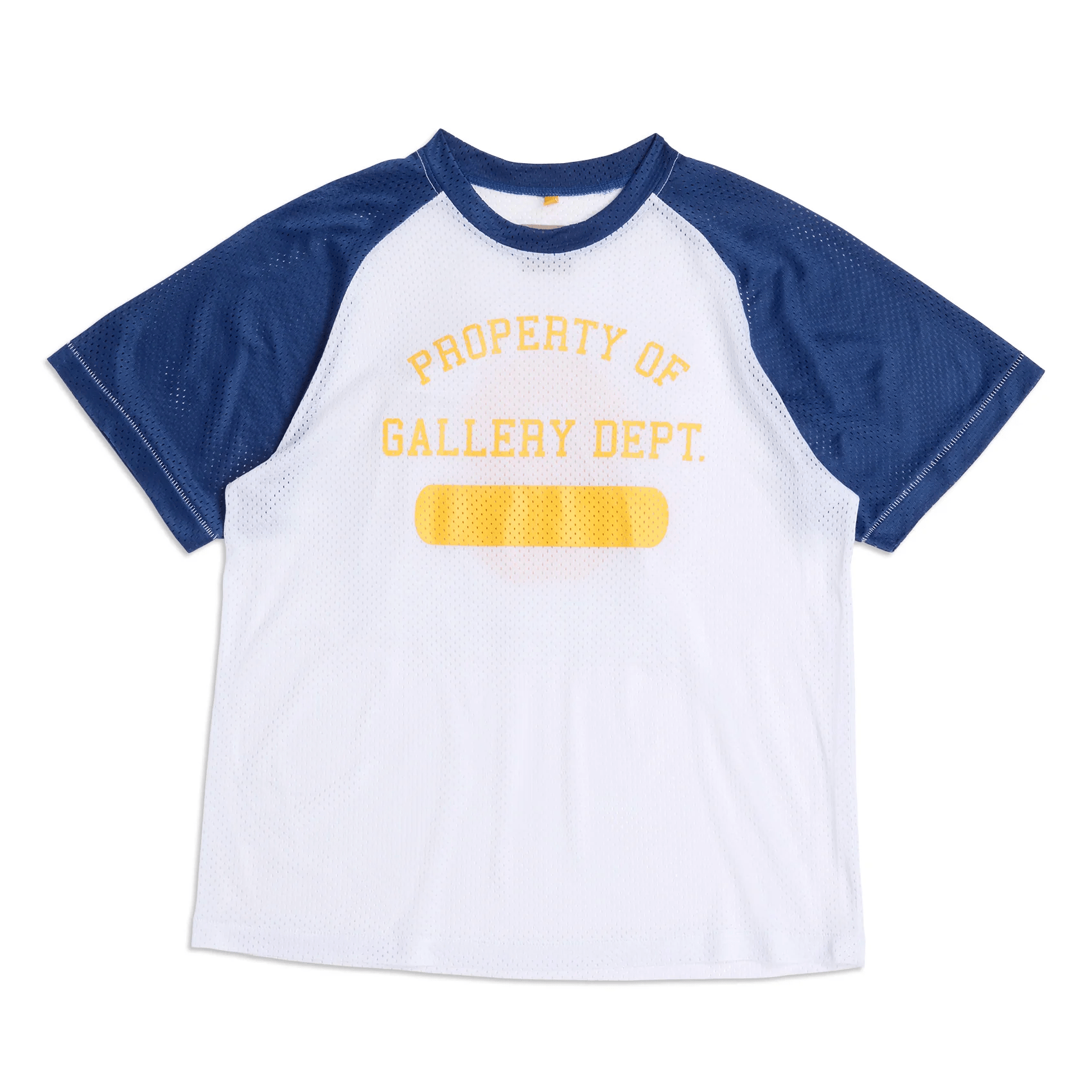 Mesh short sleeve jersey rendered in mesh emulating vintage ringer-style athletic attire from our archives.