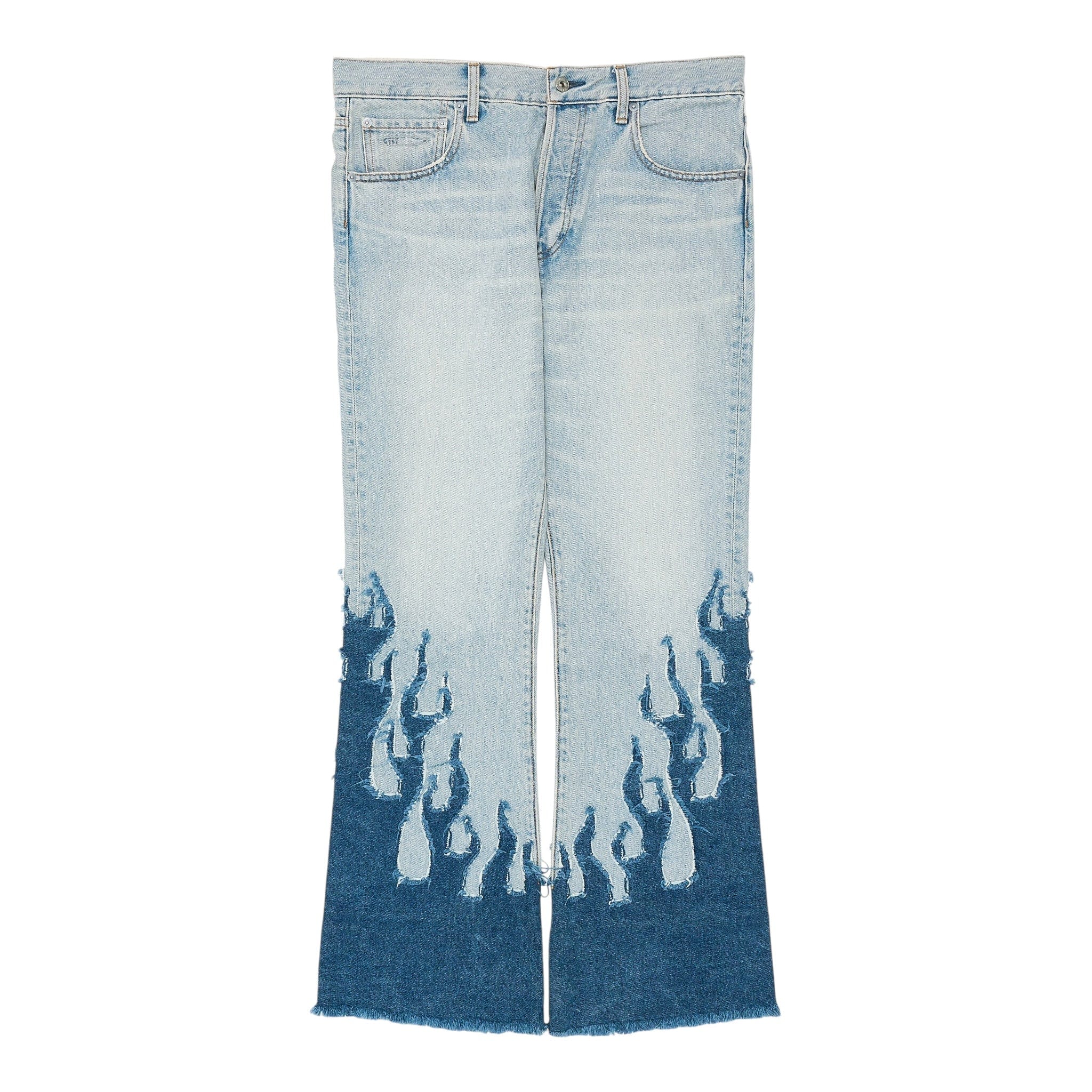 Arriving in a classic light blue hue, these flared jeans by GALLERY DEPT showcase the brand’s denim expertise. The pair sits at a mid-rise and falls into frayed flared hems which are enhanced with tone-on-tone flame appliqués.