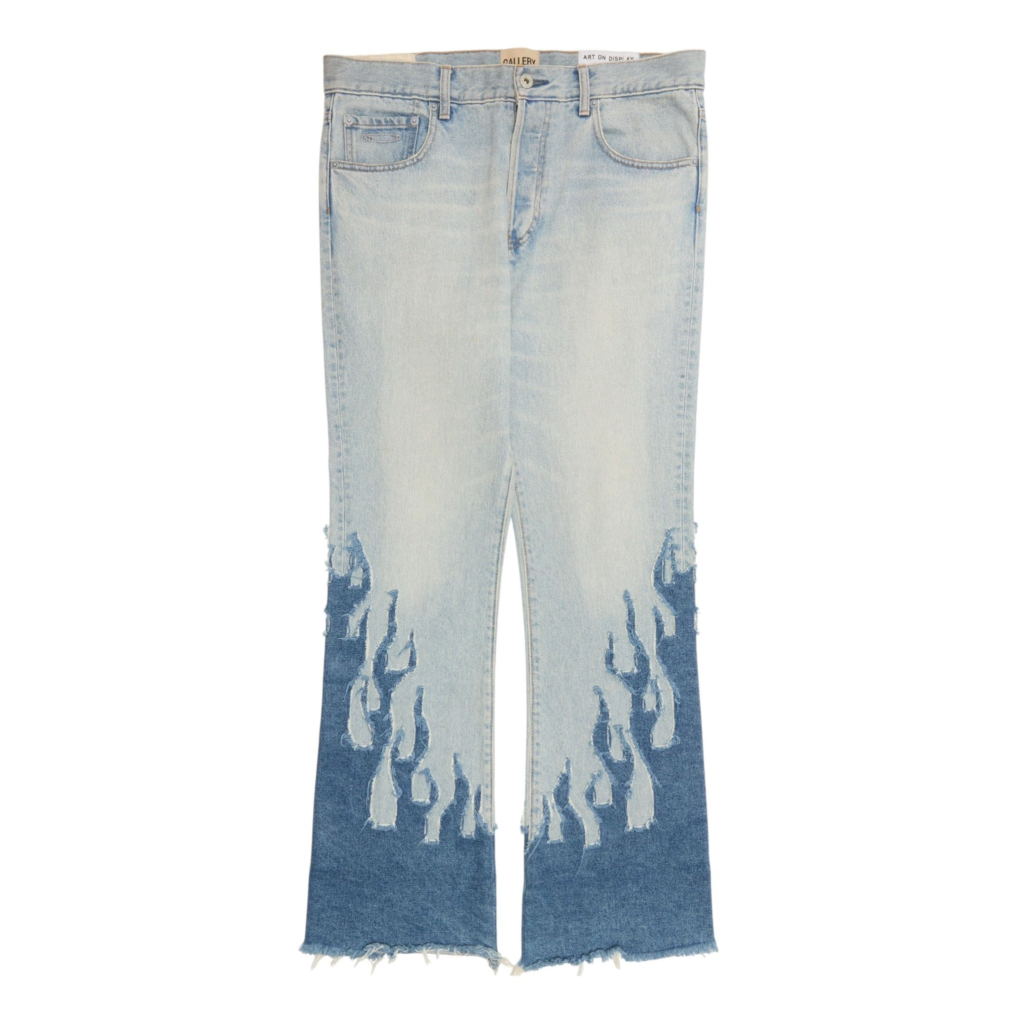 Arriving in a classic light blue hue, these flared jeans by GALLERY DEPT showcase the brand’s denim expertise. The pair sits at a mid-rise and falls into frayed flared hems which are enhanced with tone-on-tone flame appliqués. Imported Highlights light blue cotton mid-rise front button fastening belt loops classic five pockets logo patch to the rear flame appliqué at hems slight flare