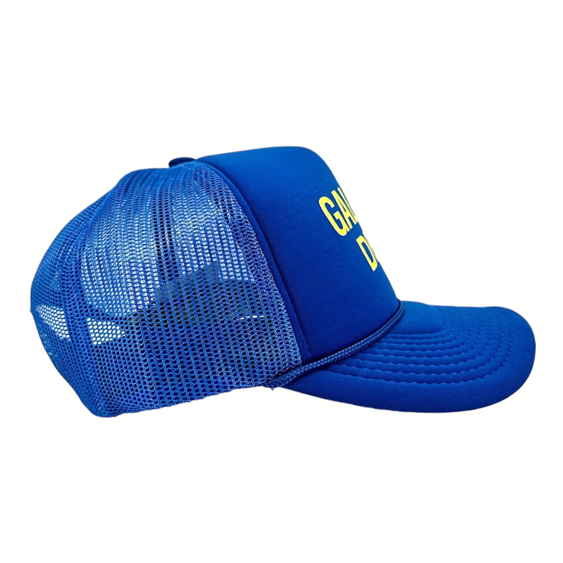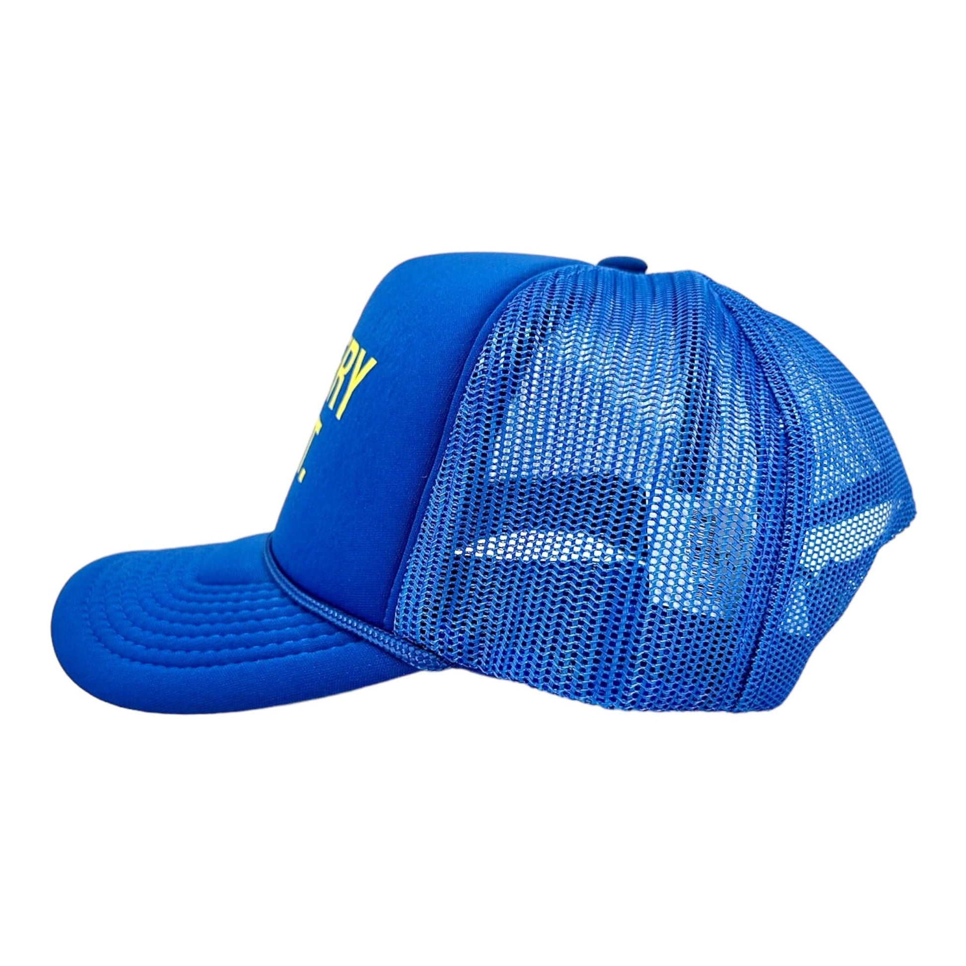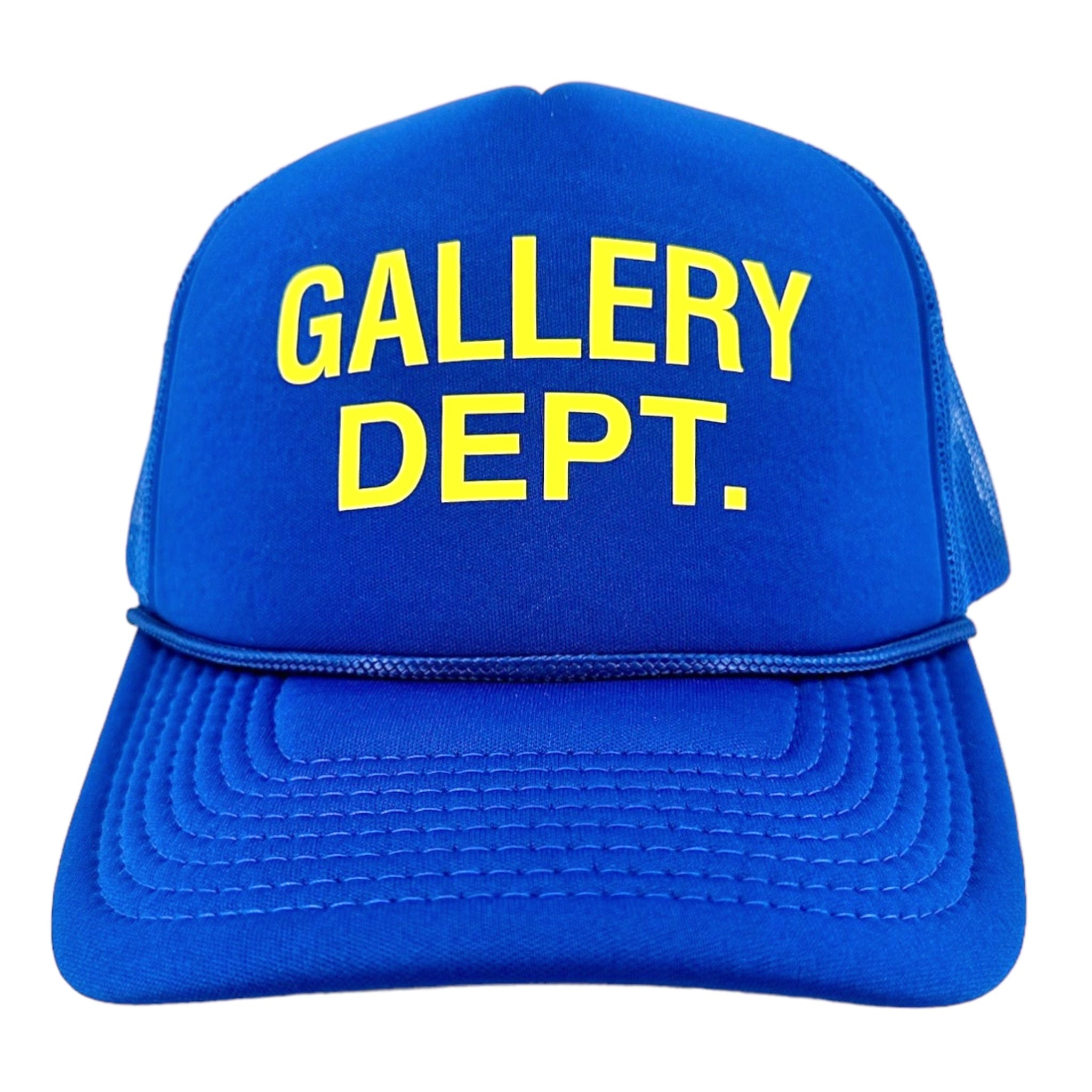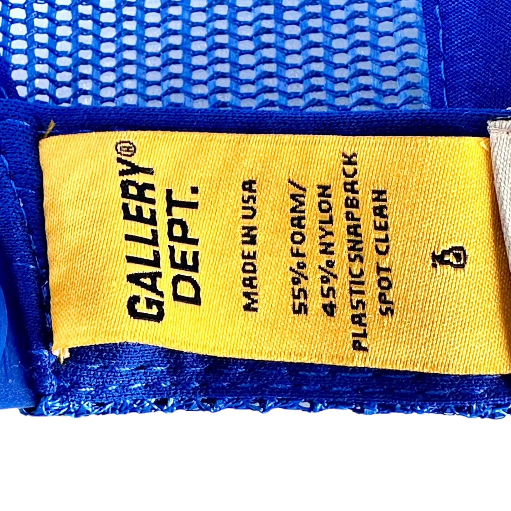Origins NYC offers this Gallery Department Logo Trucker Hat in Blue & Yellow.