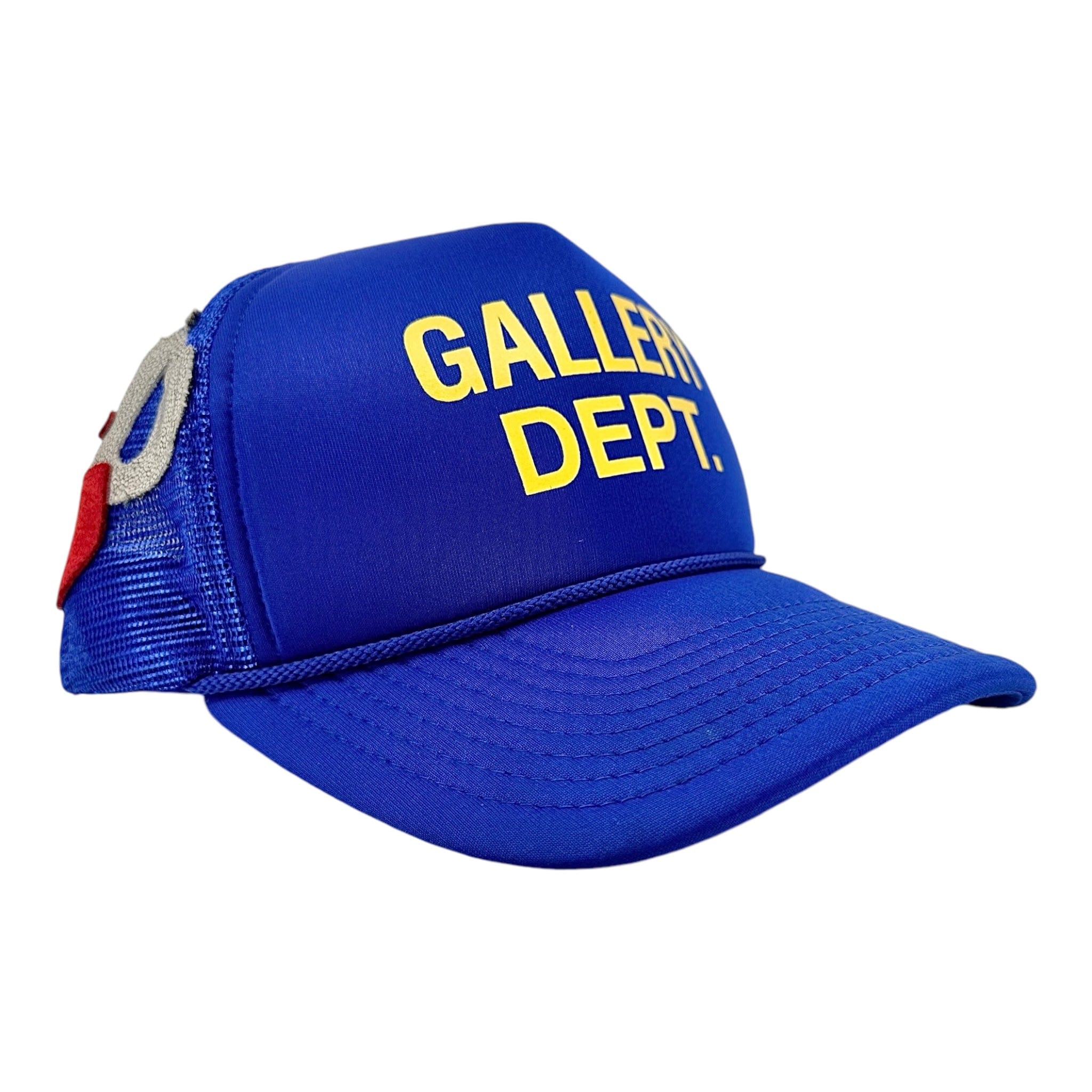 Origins NYC offers this Gallery Department Logo Trucker Hat in Blue and Yellow with 4 G Patch Custom.