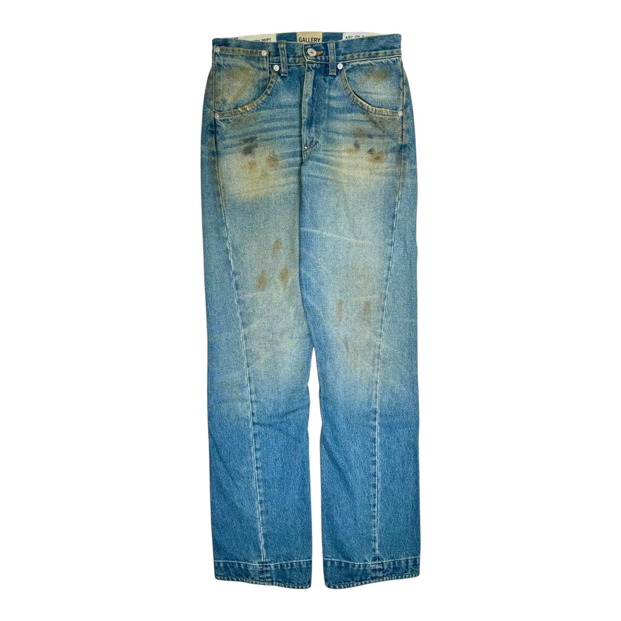 Crafted to have a looser, baggier fit, with intentionally twisted seams on either leg panel and a singular pocket at the back. The wash is based on a vintage pair of denim from our archives.