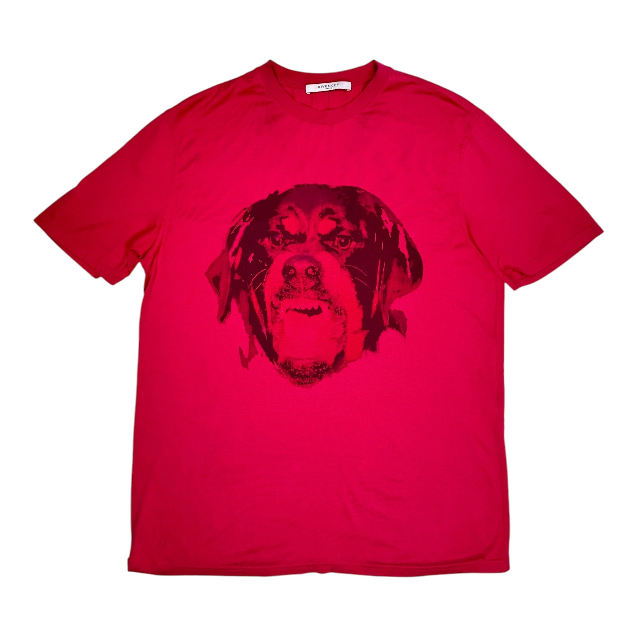 Givenchy Rottweiler Logo Short Sleeve Tee Shirt Fuchsia Black