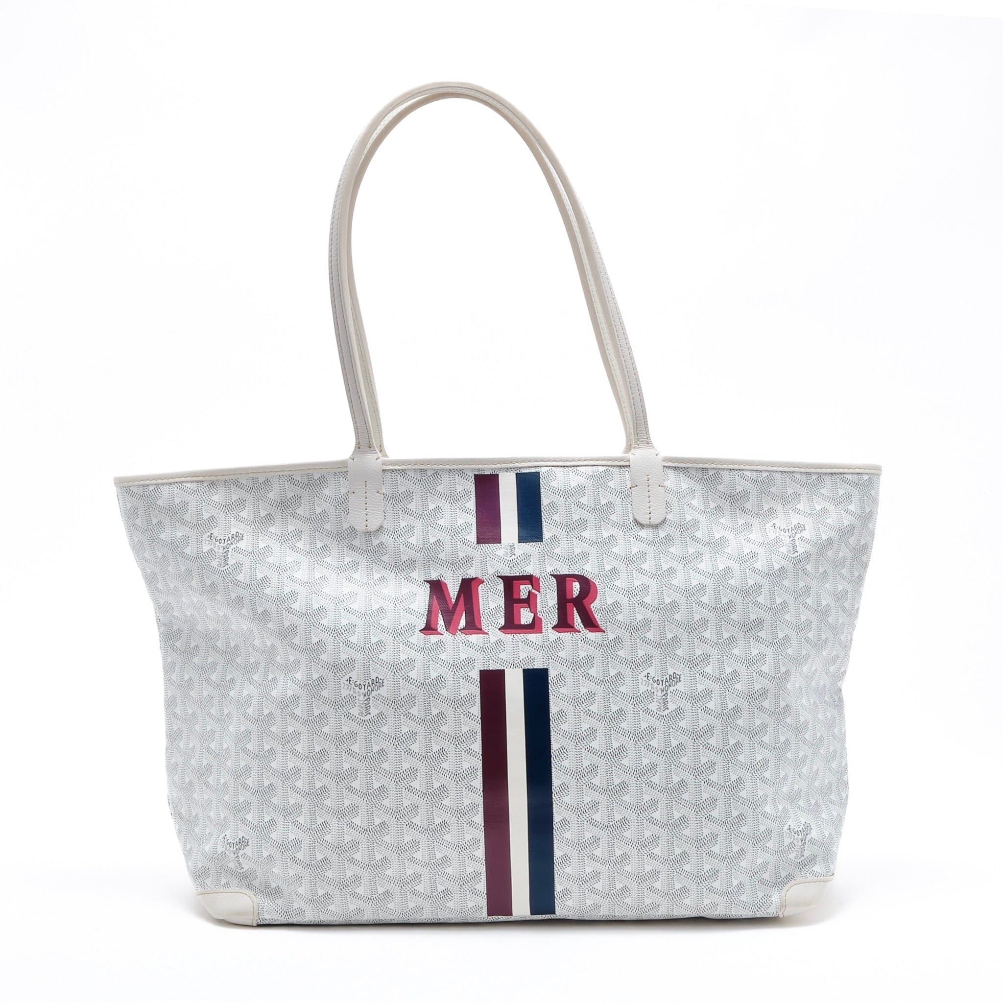 Goyard Artois Tote Bag MM Goyardine White (Custom Painted)