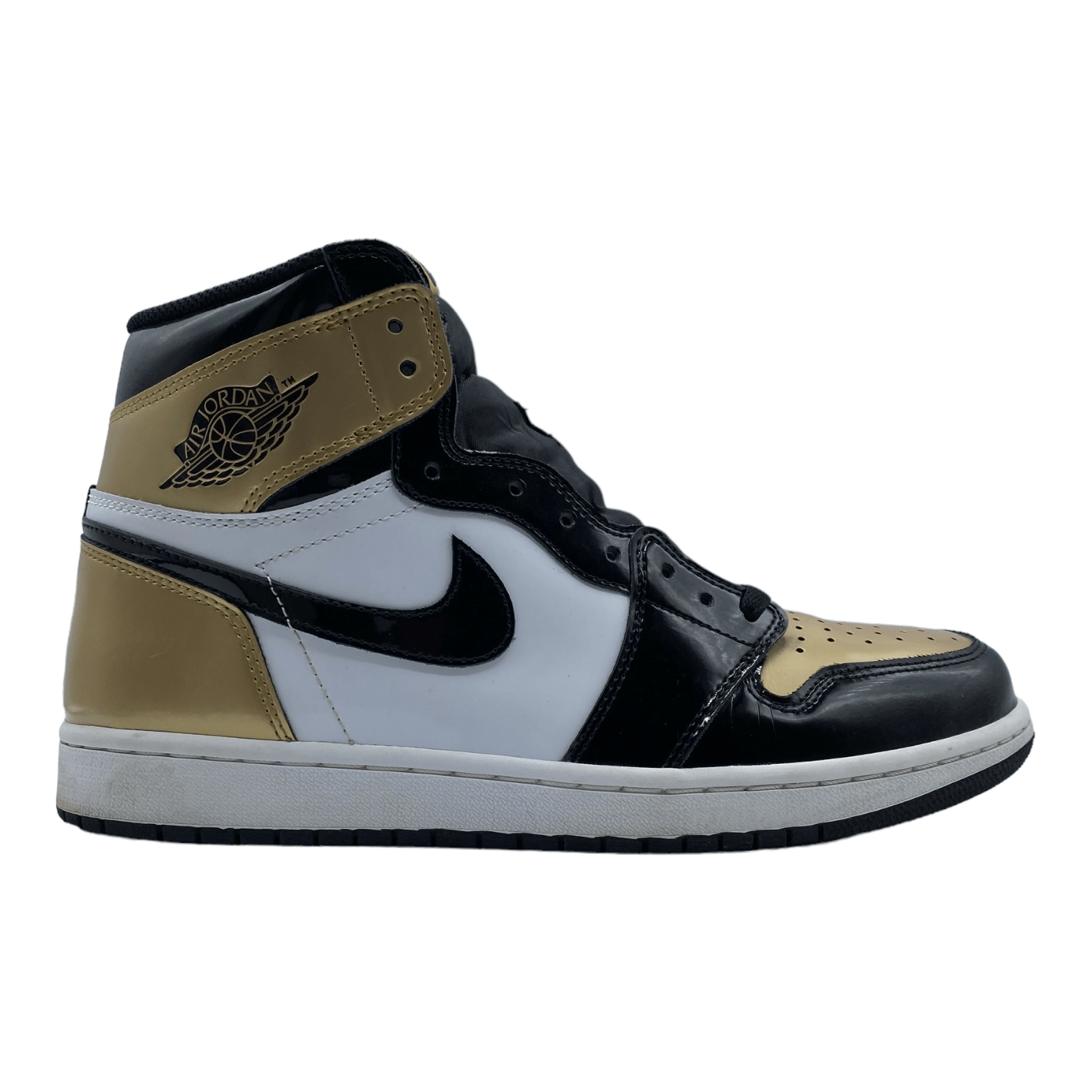 Origins NYC offers this pair of pre-owned Jordan 1 Retro High NRG in the Patent Gold Toe color way.